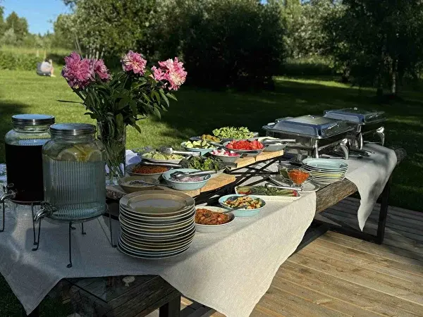 Каждый гость получает набор для пикника, включающий термос или чайник, а также все необходимые принадлежности для уютного и комфортного времяпровождения на природе.