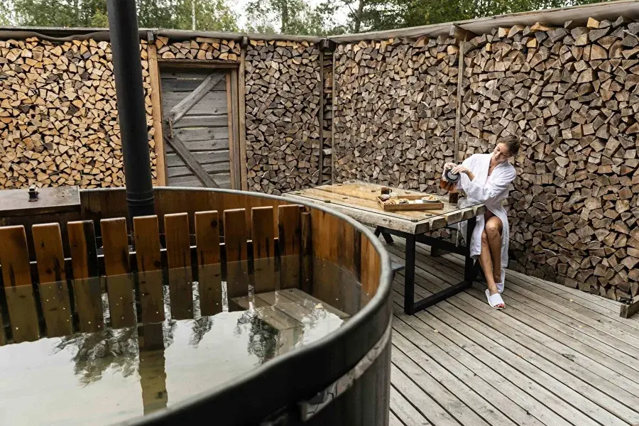Гостевой комплекс «Дубки» приглашает гостей окунуться в купель Фурако с горячей водой на свежем воздухе. Эта изысканная конструкция доступна исключительно в комплекте с баней, создавая идеальные условия для наслаждения теплом под открытым небом в любое время года.