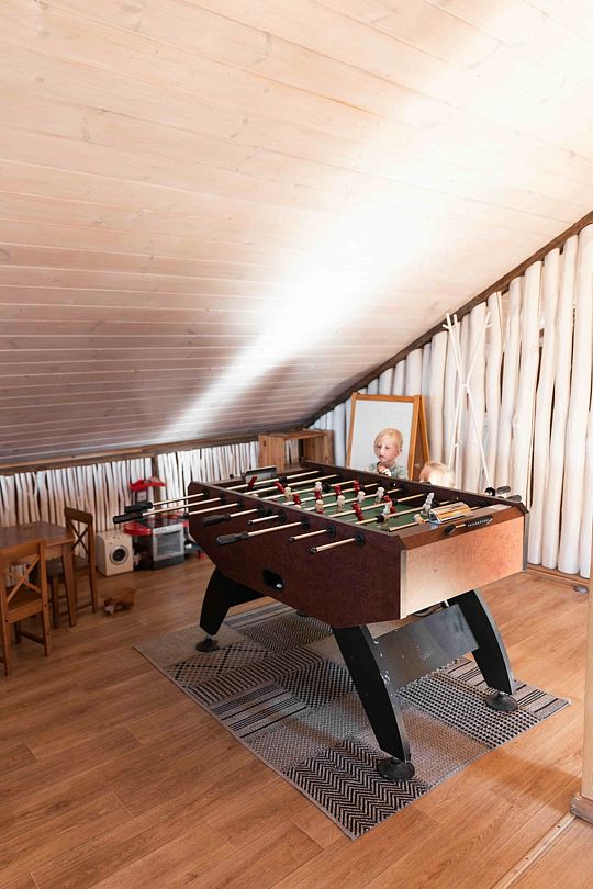 Лаунж-зона в Гостевом комплексе «Дубки» — это излюбленное место встречи гостей, расположенное на мансарде первого корпуса. Здесь царит уютная атмосфера, где каждый найдет себе занятие по душе.