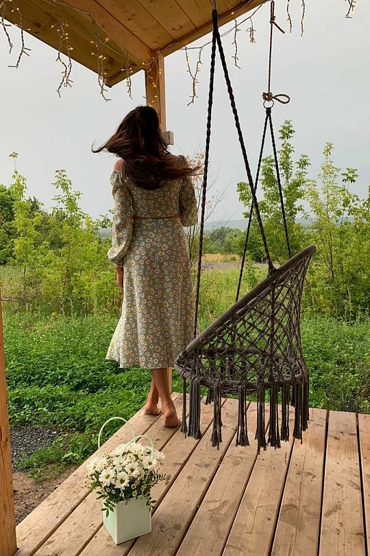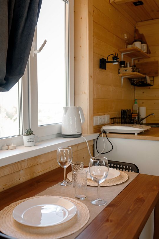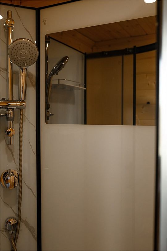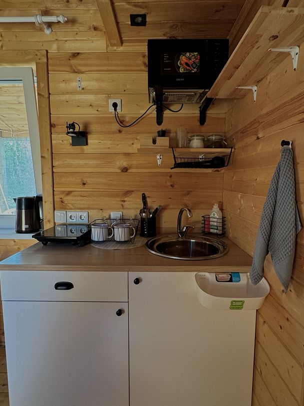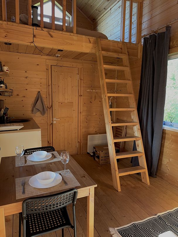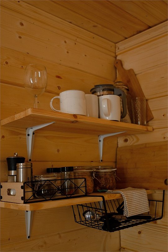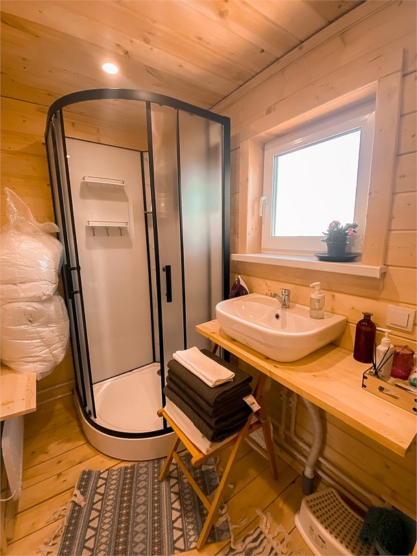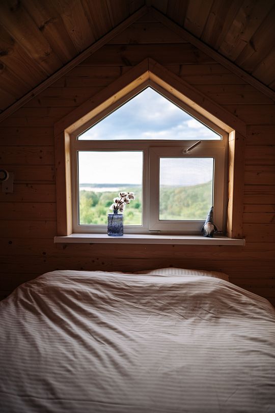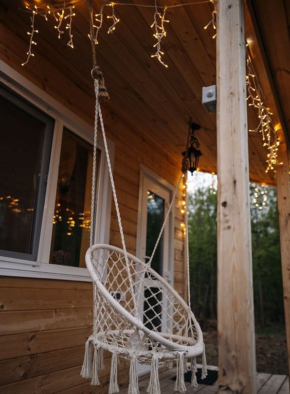 Внутри вас ждет полностью оборудованная кухня, где вы сможете готовить любимые блюда, а индивидуальная зона мангала позволит устроить незабываемый вечер с шашлыками на свежем воздухе. Представьте, как ваша вторая половина наслаждается покоем в подвесном кресле, укутавшись в плед, пока вы готовите сочные овощи и мясо на мангале с живописным видом на природу. На первом этаже расположена раскладной диван, а основное спальное место удобно размещено на втором этаже — идеально для спокойного сна под звуки природы.
