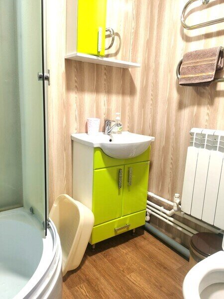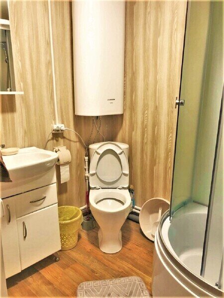 - санузел (душевая кабина, туалет, водонагреватель 100л, умывальник, зеркало, полотенцесушитель, фен);