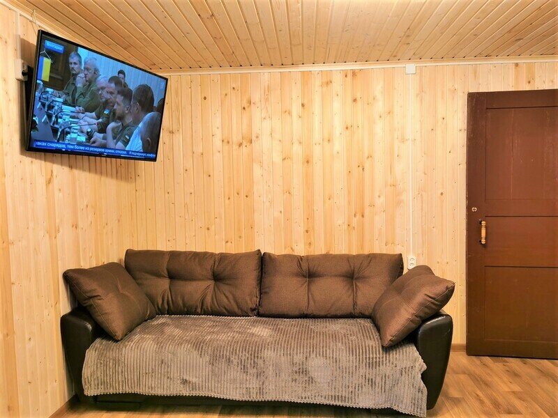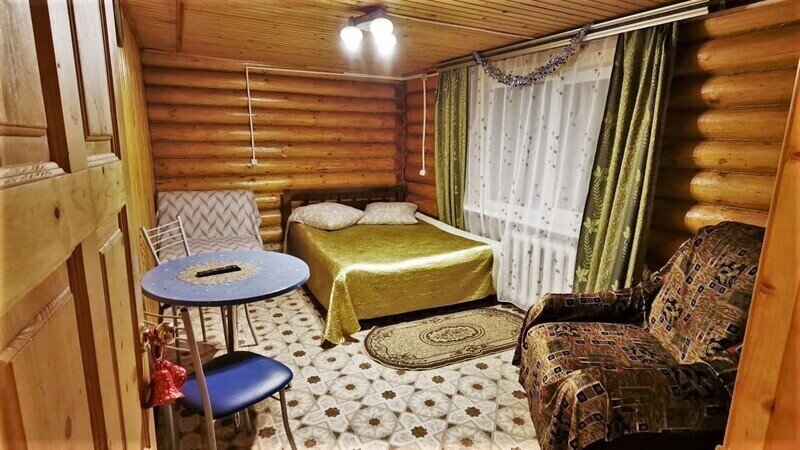 - комната (2-х местная кровать, большой диван, шкаф для вещей, стол со стульями, комод, ЖК-телевизор, печь-голландка);