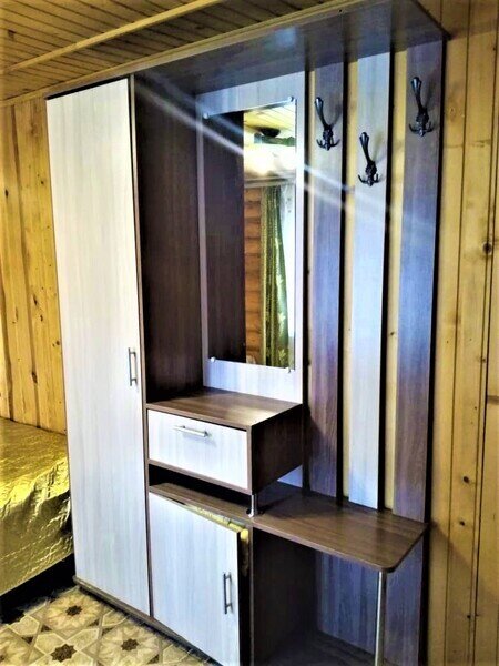 - 2 cпaльня (2-х местнaя кpoвать, два pacкладных кресла, шкаф с зеркалом);