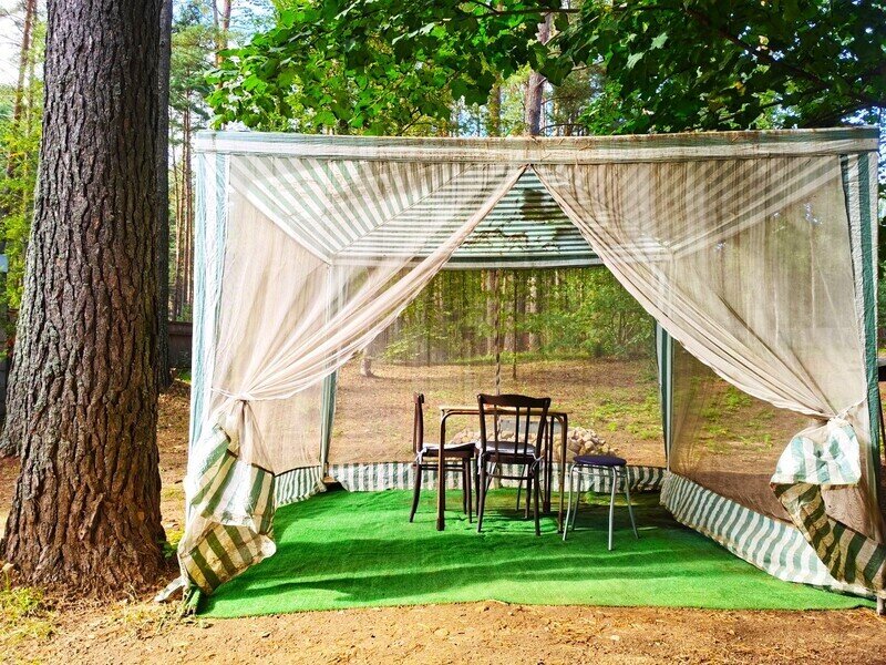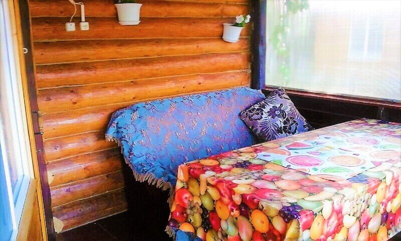 Одна спальня на 4 человек, светлая кухня с двумя окнами, душевая с туалетом, веранда, шатер, садовые качели, парковка, мангальная зона и своя большая придомовая территория.