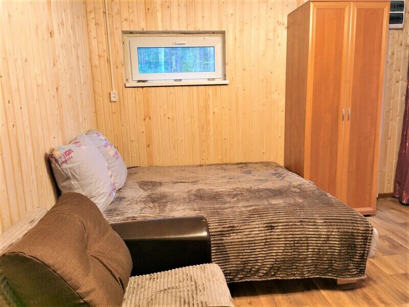 - 1 спальня (2-х местная кровать, угловой диван, кресло, столик, комод, ЖК-телевизор, конвекторный обогреватель);