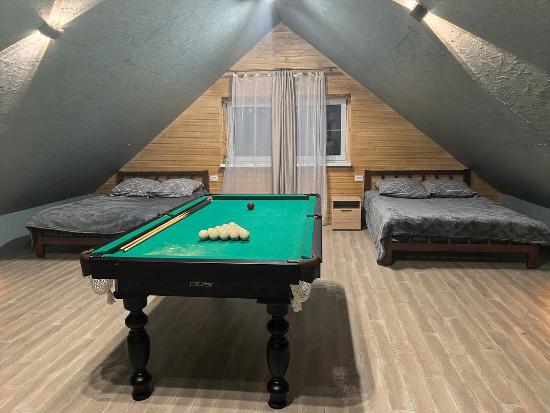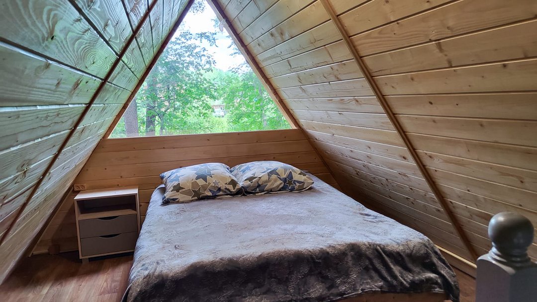 Две двуспальные кровати, одна диван-кроватьВ а-фрейме
