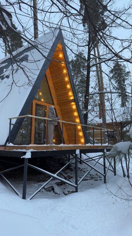 При заезде в Домики A-frame вносится залог 5000 ₽, возвращается после выезда.