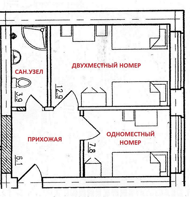 19 м2 · 2-х местный гостиничный номер