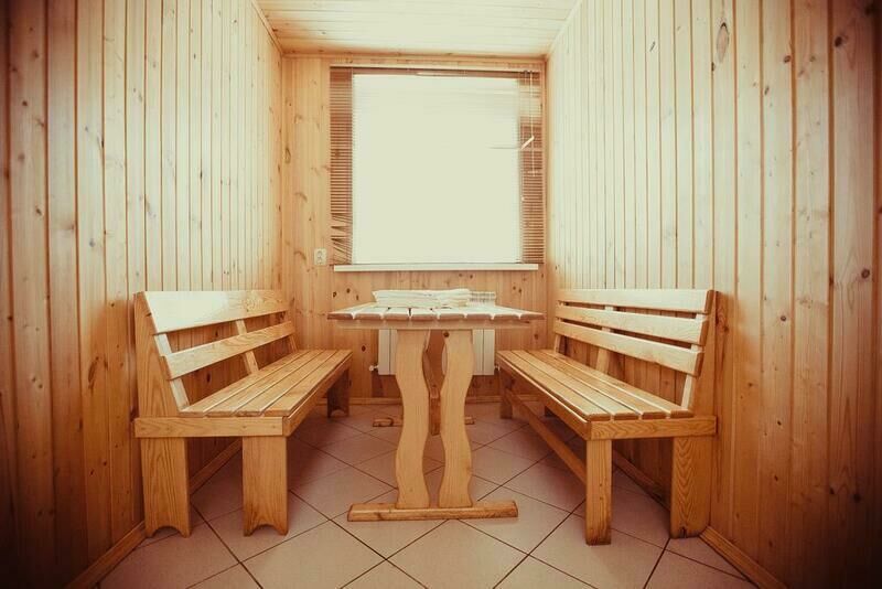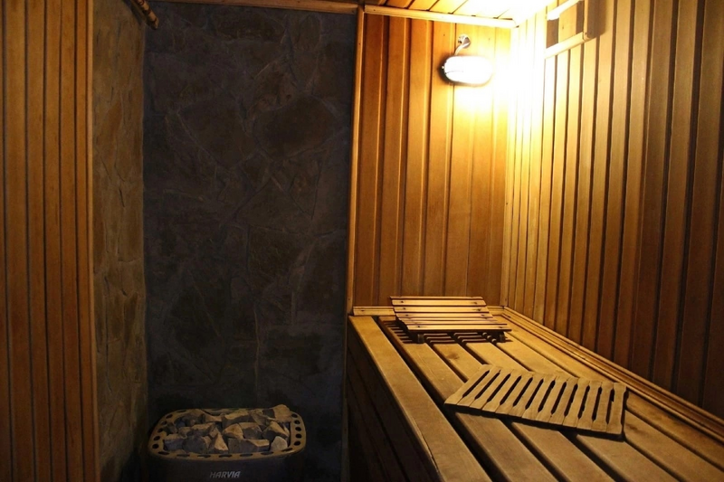 Комплекс включает банкетный зал вместимостью до 20 человек и финскую сауну с комнатой отдыха, вмещающую до 6 человек.