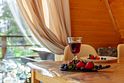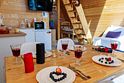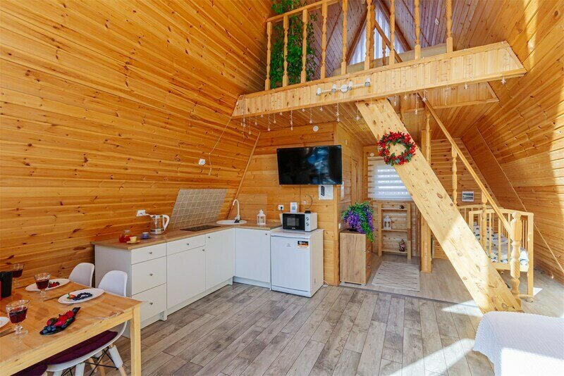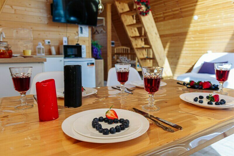 Здесь можно снять роскошный дом-шале со всеми удобствами, отлично подходящий для длительного проживания, шале большое на компанию до 10 человек, лаконичный маленький домик-шале для любителей романтики и минимализма. Гости могут заказать еду с доставкой или посетить ближайший ресторан. Также доступна аренда бани на дровах, бочка-джакузи с подсветкой и гриль беседка с мангалом.