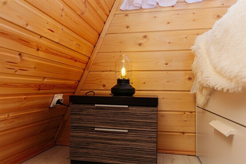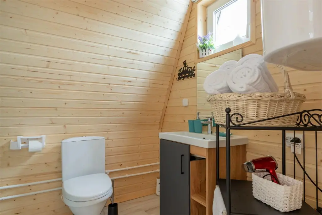 Этот стильный домик шале № 2 , вмещающий до 4 человек, общей площадью 52 кв.м, полностью выполнен из натурального дерева и оборудован всем необходимым для незабываемого отдыха. Насладитесь теплыми полами с регулируемой температурой, дополненных настенным кварцевым обогревателем и кондиционером. Современный экологический септик гарантирует ваш комфорт, а декор ручной работы создает неповторимую атмосферу.