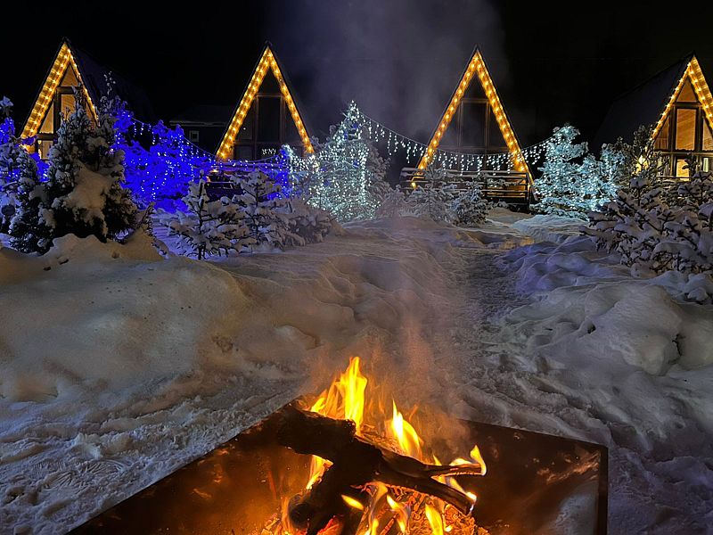 Не выбраноДостоинстваПо новогоднему красиво и уютно, тепло.Так как было мало времени, не успели забронировать баню