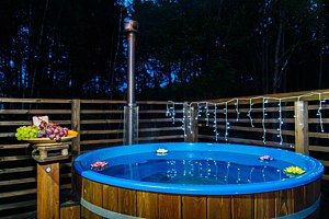 - Горячая бочка с аэромассажем под открытым небом
