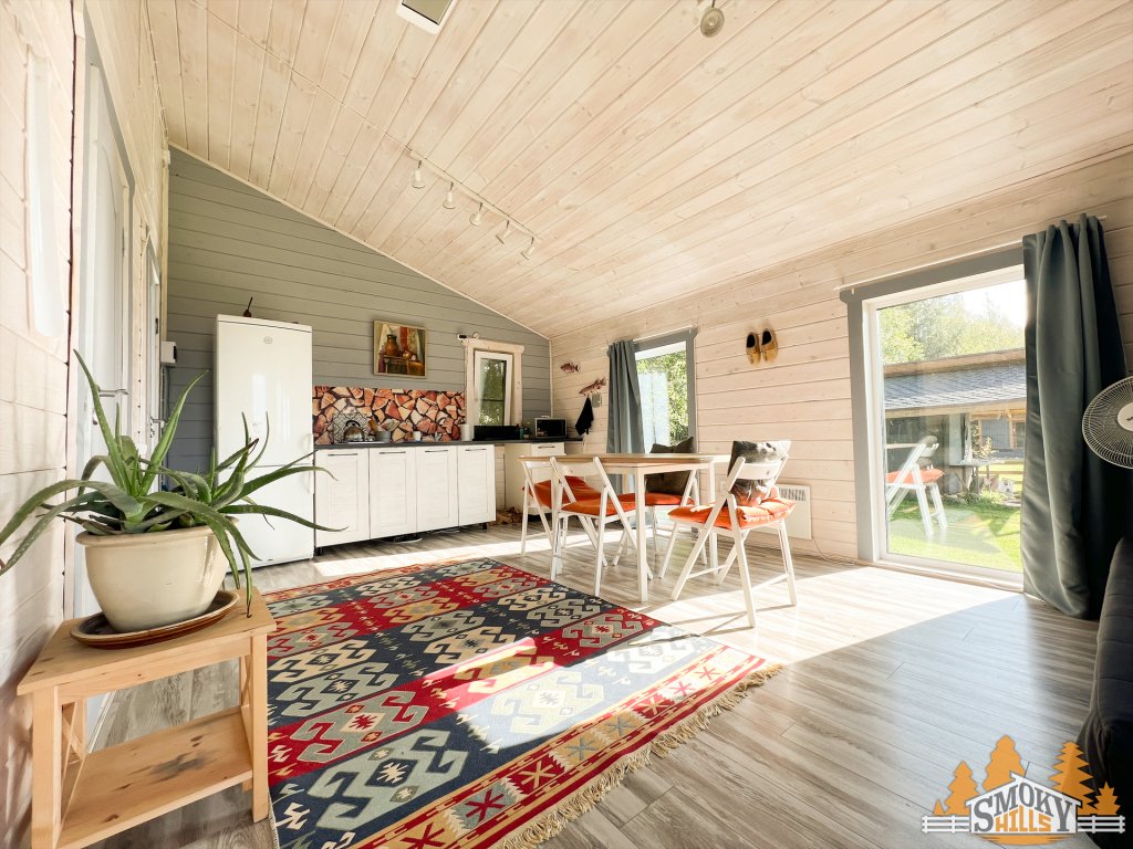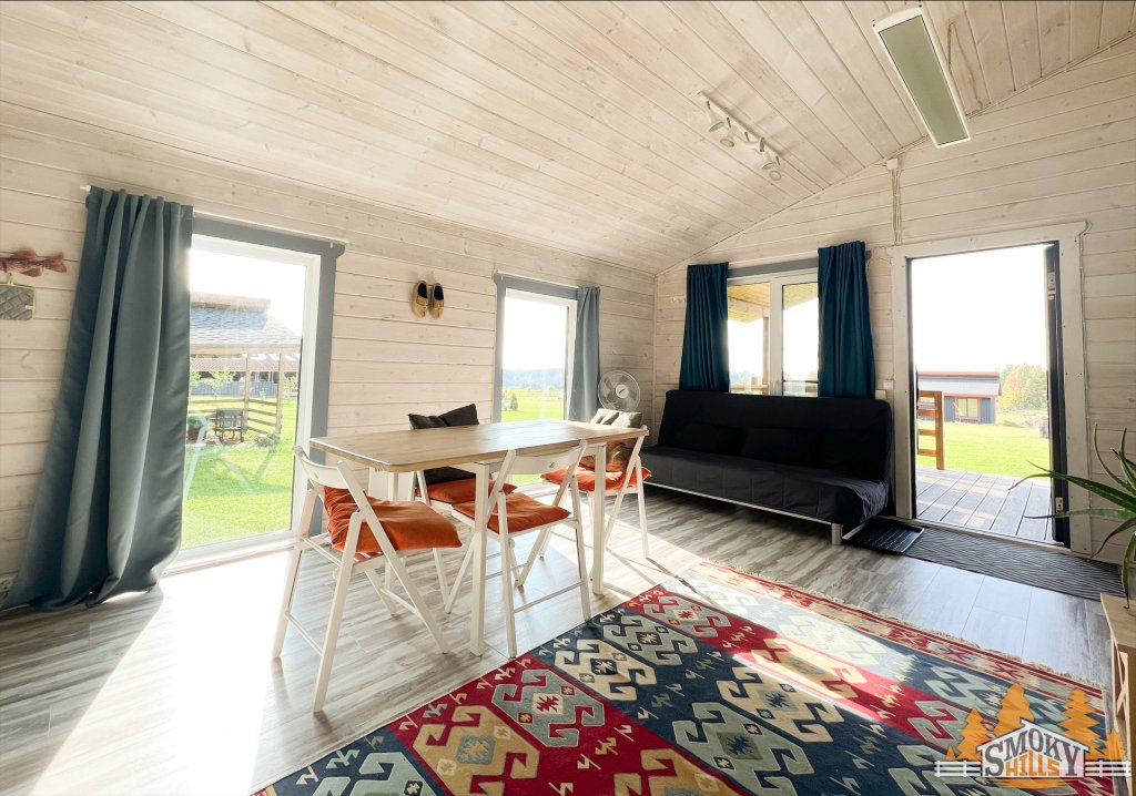 Wi-Fi, холодильник, фен, вентилятор, плита для приготовления пищи, обогреватель, душевая кабина, водонагреватель, теплый пол, терраса, двуспальная кровать, две односпальные кровати, стулья, вешалки, журнальный столик, обеденный стол, чайный набор, посудомоечная машина, стиральная машина, чайник, раковина, кресло, высокие потолки, кухонная посуда, стаканы, кухонная утварь, столовые приборы, туалетные средства, туалет, мангал, принадлежности для барбекю, панорамные окна, сушилка для белья, вид на горы, двуспальный раскладной диван-кровать, затемняющая штора, открытый шкаф, можно с питомцами, уличная мебельВ номере