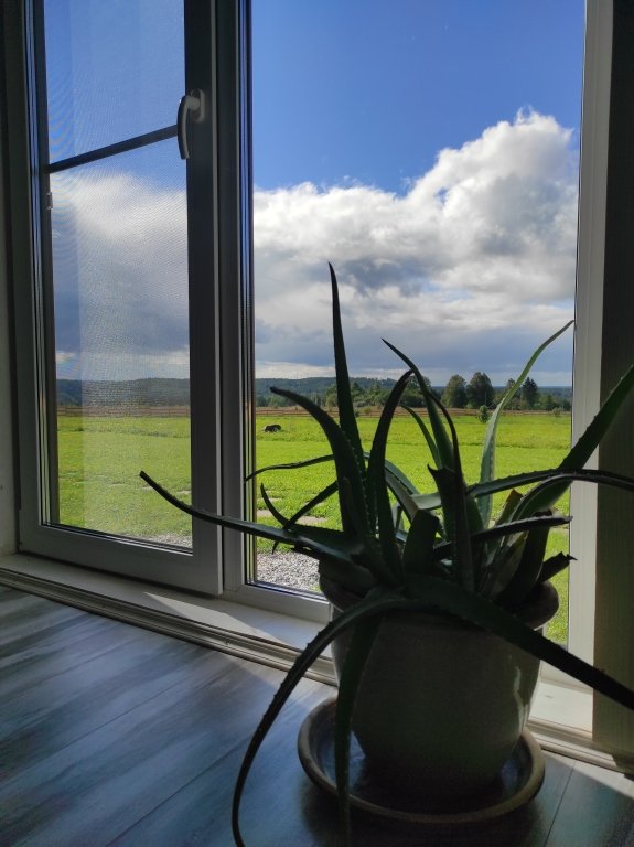 Из каждого нашего дома открывается великолепный вид на долину с тремя горнолыжными курортами и природный заповедником 'Красное Озеро". Все дома развернуты на Юг. Восходящее солнце стучится в окна не ранее 11 часов, в течение дня участок представляет собой солнечную поляну, а к вечеру с террасы каждого дома Вы сможете любоваться величественным закатом. Открытое продуваемое место способствует отсутствию комаров. Дома очень уютны и комфортны!Услуги и удобства