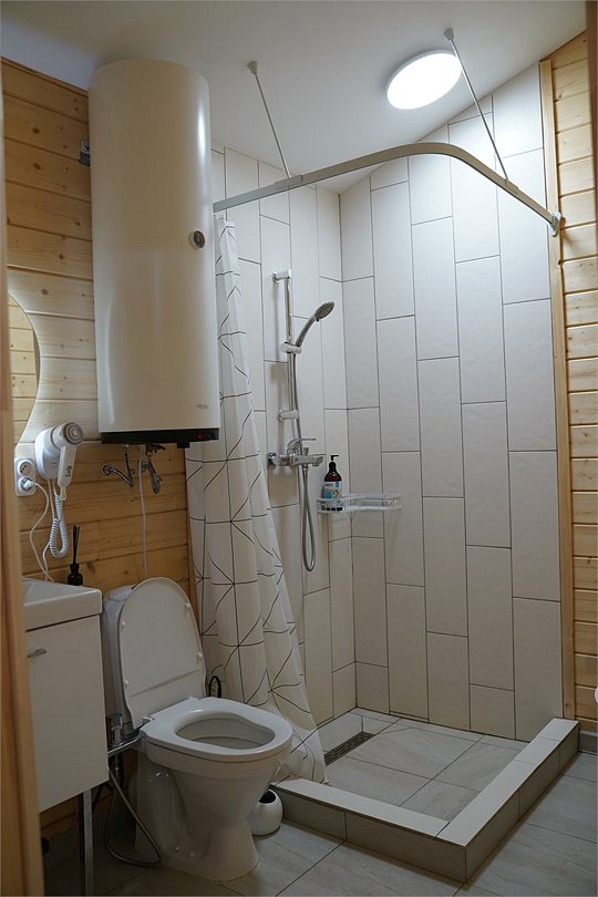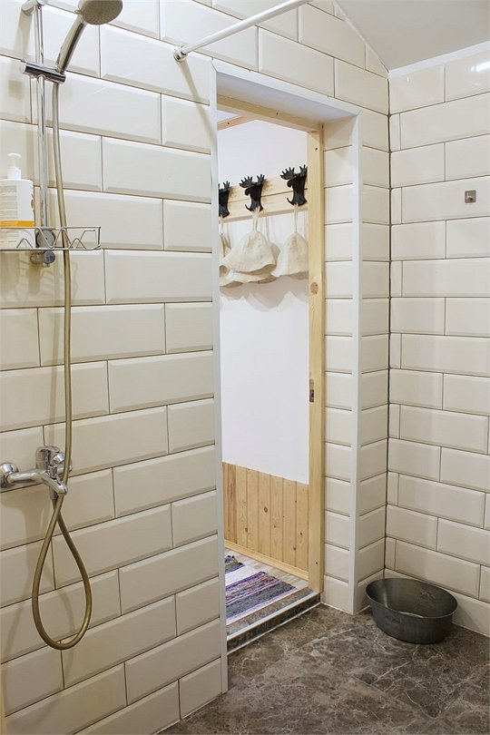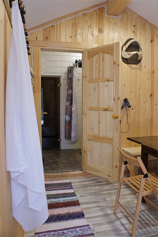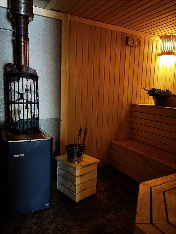Баня на дровах состоит из четырех комнат: прихожей для хранения уличной одежды, чайной с большим столом и ароматными травами, душевой с туалетом и обливным ведром, а также парной. Гостям предоставляются шапочки для парения, полотенца и простыни для обертывания.