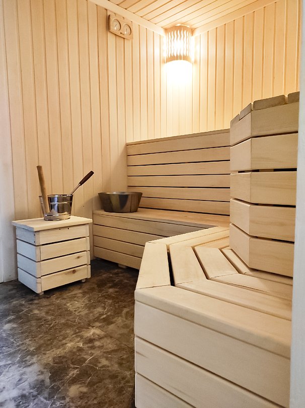 Инфраструктура: зона отдыха, полотенца, простыни, шапочки, обливное ведро, душ, дубовые веники, чай/угощенияБаня на дровах состоит из четырех комнат: прихожей для хранения уличной одежды, чайной с большим столом и ароматными травами, душевой с туалетом и обливным ведром, а также парной. Гостям предоставляются шапочки для парения, полотенца и простыни для обертывания.