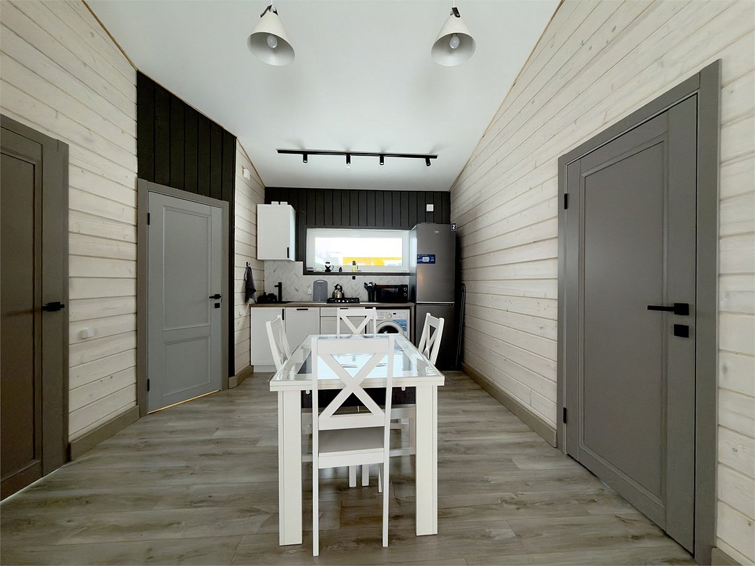 Wi-Fi, холодильник, светильник, фен, вентилятор, плита для приготовления пищи, обогреватель, душевая кабина, банные полотенца, терраса, кровать «King size», вешалки, обеденный стол, зеркало, набор посуды, чайник, отопление, душ, ламинат, кухонная посуда, стаканы, кухонная утварь, столовые приборы, стул, туалетные средства, туалет, мангал, панорамные окна, мини-холодильник, мини-кухня, вид на озеро, теплые полы, вид на лес, чайная станция, можно с питомцамиВ коттедже