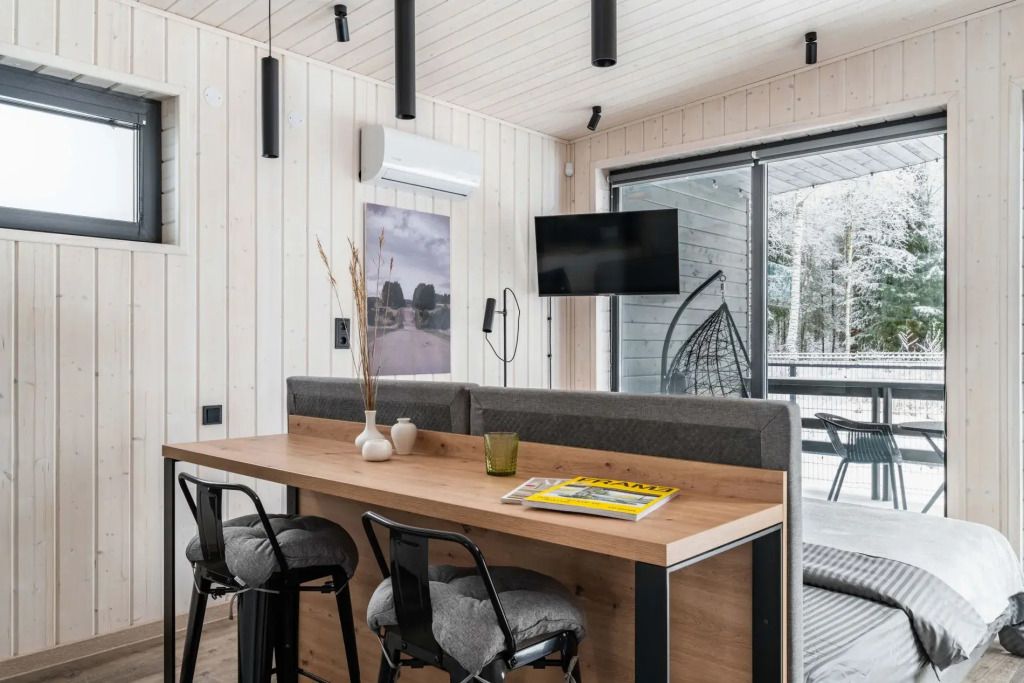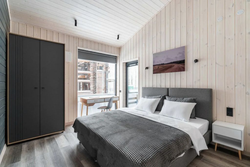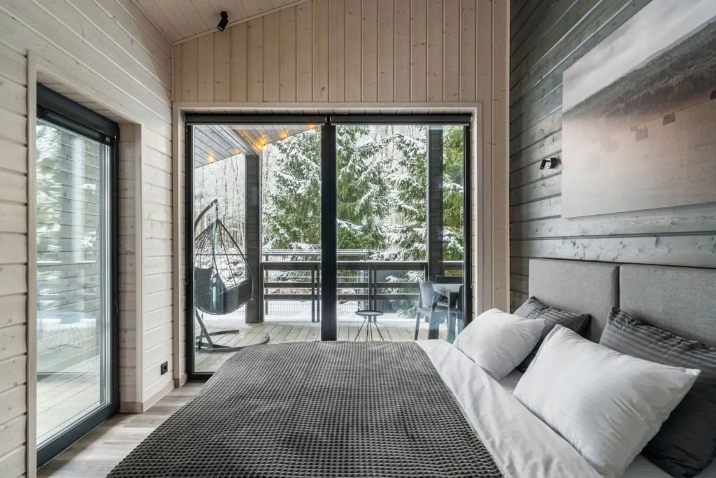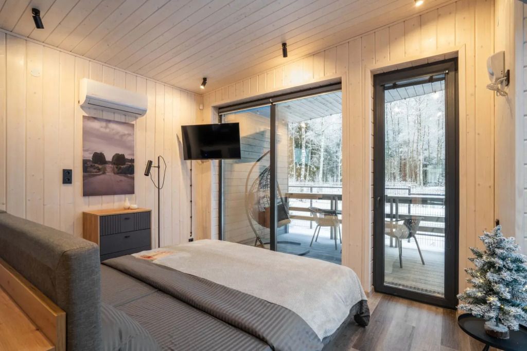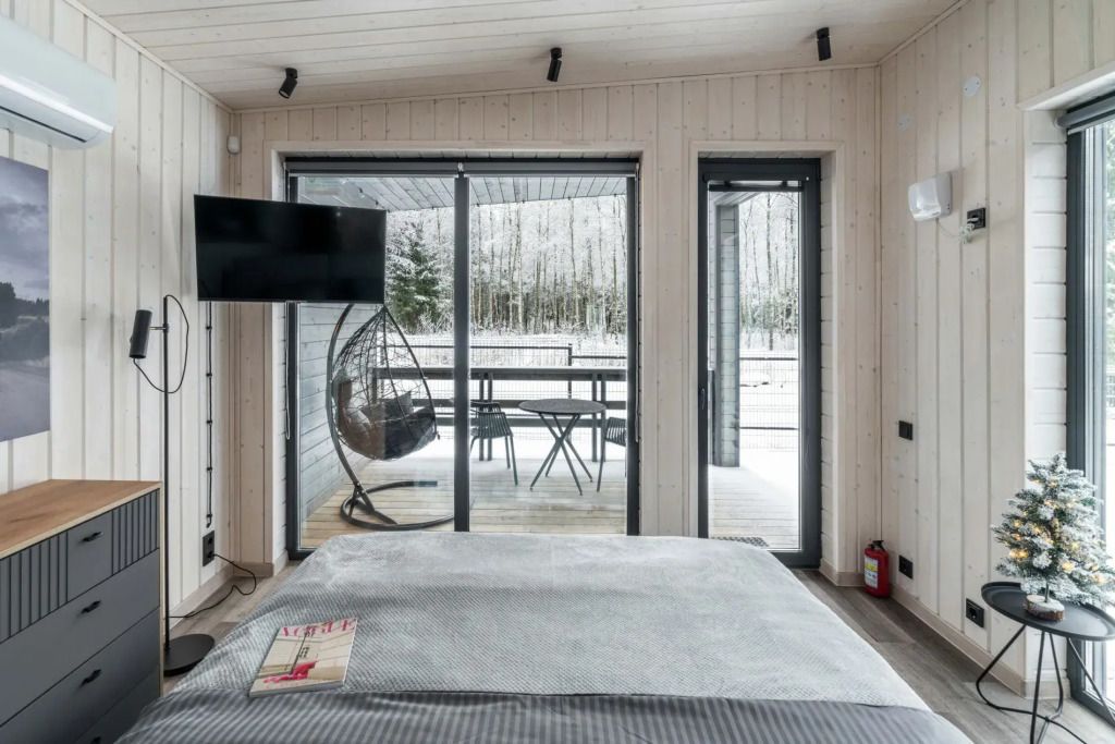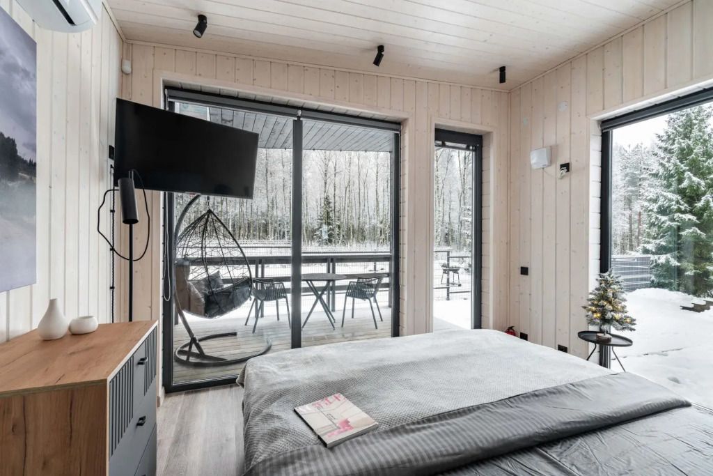 Двухместный коттедж с красивым видом из окна двуспальная кровать
