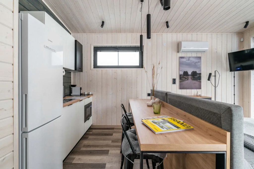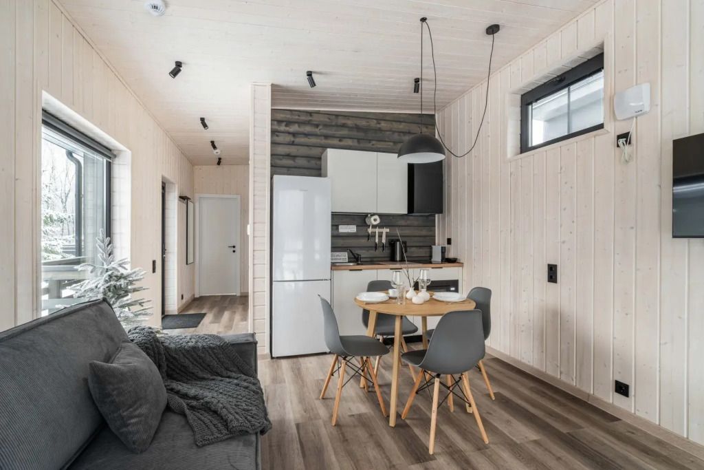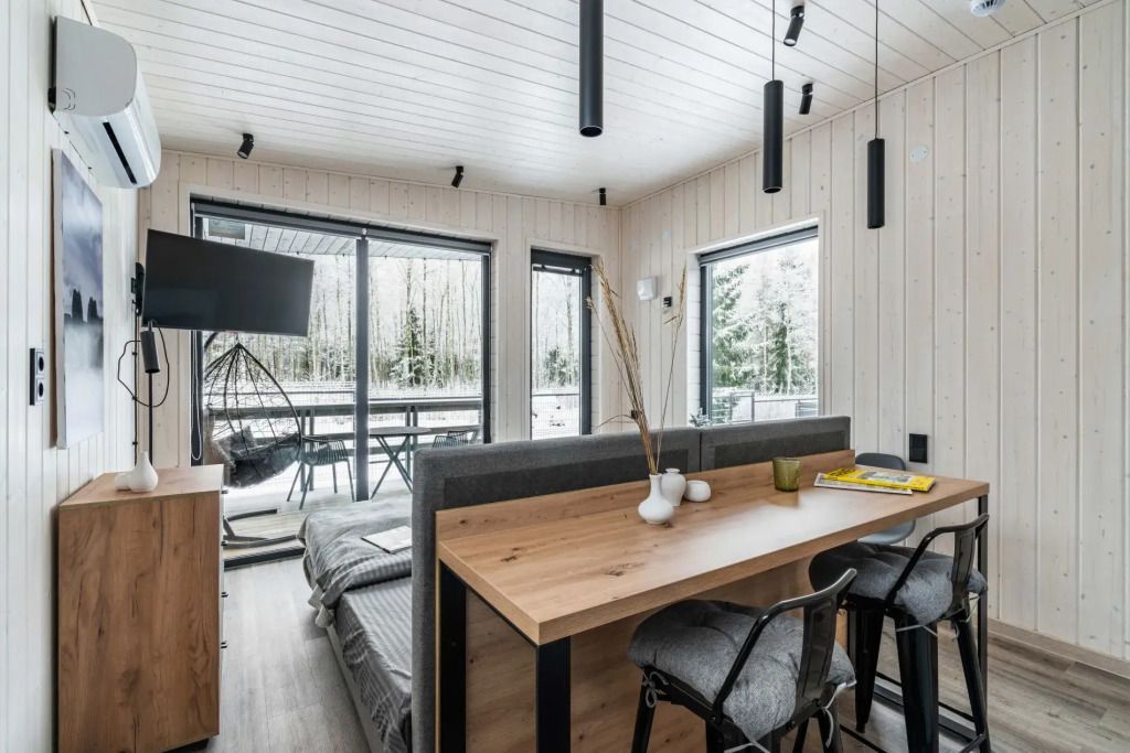 Дома на базе отдыха предназначены на 6, 4 и 2 гостей. В большой даче есть домашний кинотеатр. В большой и средней дачах есть двуспальные диваны.