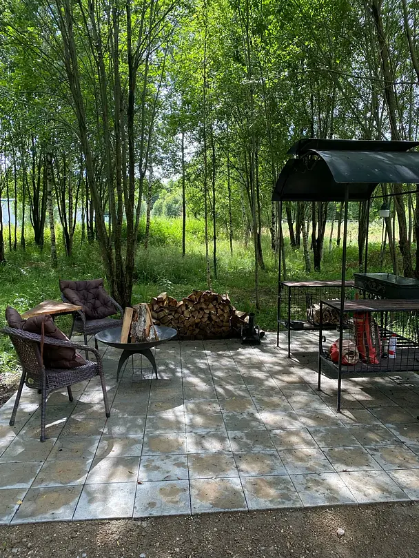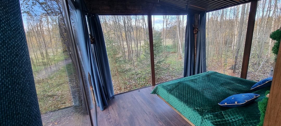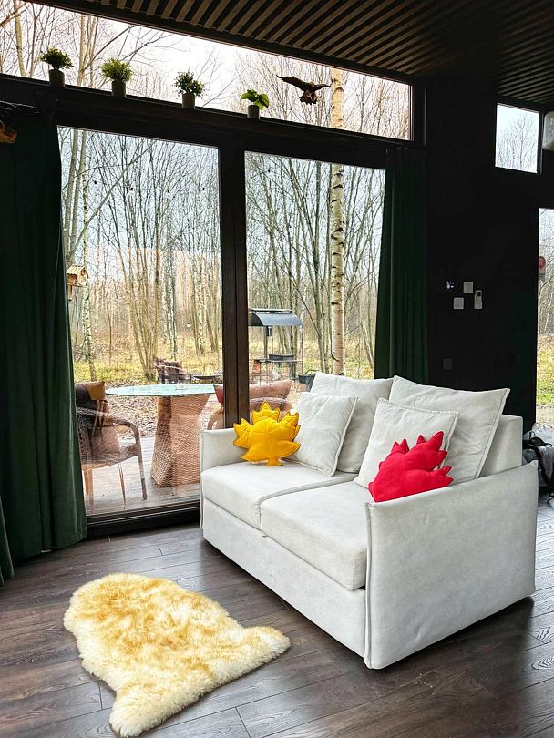 Потрясающий панорамный вид на лес и реку Лесминка создает ощущение уединения и связи с природой. Это идеальное место для тех, кто ищет уютный отпуск с близкими, наслаждаясь временем, проведенным вместе за настольными играми.