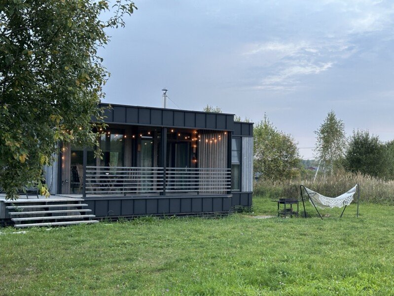 Около домика мангальная зона. Своя парковка. Дом 46 м² и терраса 22 м². Мебель на веранде, два лежака и гамак для Вашего комфорта. Умная колонка «Алиса» сразу окутает Вас музыкой и расслабленной атмосферой.