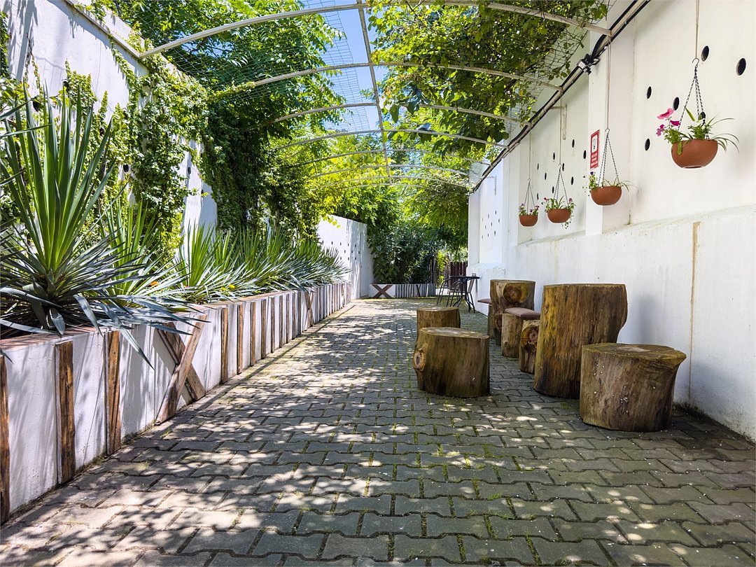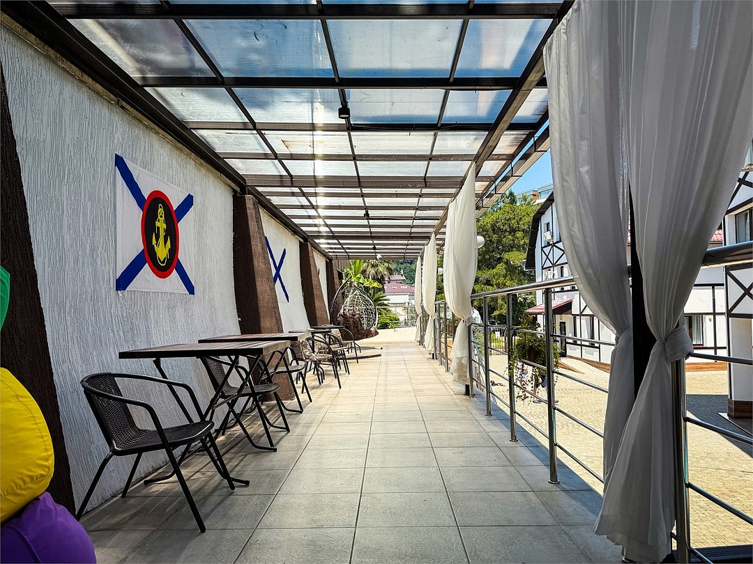Приехали в 8 утра и нас сразу же заселили в номер! Оплатили мы лишь завтрак, так как первая услуга по программе пребывания - обед. Еда здесь разнообразная и очень вкусная! Красивая территория с фонтачкиком, пальмами, спортивной и детской площадкой, есть парковка, бассейн, собственный выход к морю.