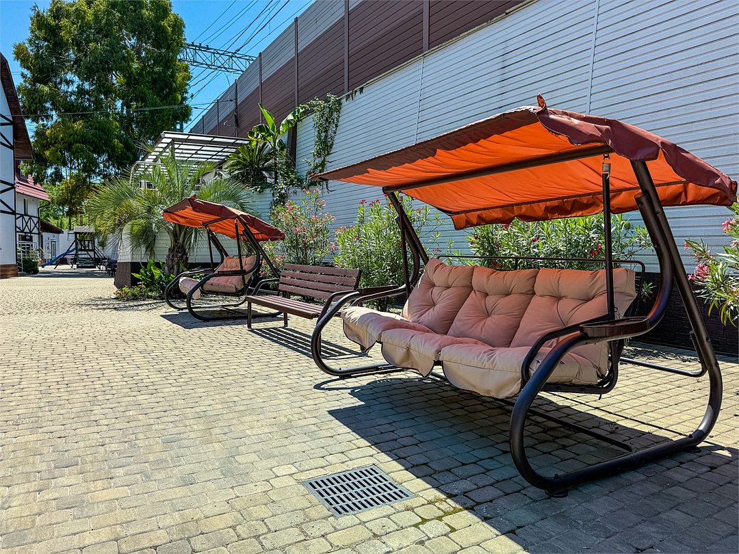 Территория комплекса «Генрих» в Дагомысе огорожена от посторонних, ухожена и постоянно охраняется. На его территории растут экзотические пальмы и цветы. На их фоне особенно хорошо выглядит спортивная площадка. Кроме нее, к услугам жильцов – открытая бесплатная парковка, кафе с летним, а летом – открытый бассейн.