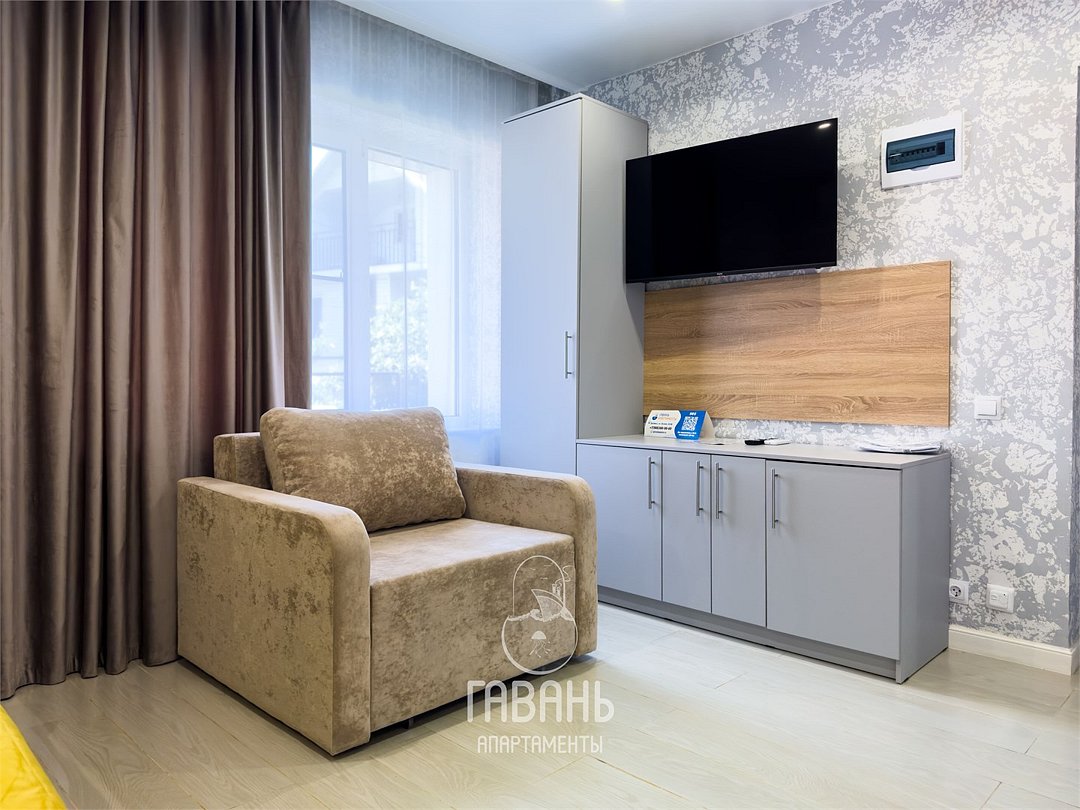 СТИЛЬНАЯ СОВРЕМЕННАЯ СТУДИЯ КАТЕГОРИИ "КОМФОРТ" ОФОРМЛЕННАЯ В СПОКОЙНЫХ ТОНАХ. УЮТНЫЙ УГОЛОК ДЛЯ ОТДЫХА С ОДНОЙ ДВУСПАЛЬНОЙ КРОВАТЬЮ ИЛИ ДВУМЯ ОДНОСПАЛЬНЫМИ КРОВАТЯМИ И УДОБНЫМ КРЕСЛОМ-КРОВАТЬЮ. УКОМПЛЕКТОВАННАЯ КУХНЯ С ОБЕДЕННОЙ ЗОНОЙ, ВАННАЯ КОМНАТА С ДУШЕВОЙ КАБИНОЙ СОЗДАЮТ ОБСТАНОВКУ ФУНКЦИОНАЛЬНОСТИ И КОМФОРТА.Услуги и удобства