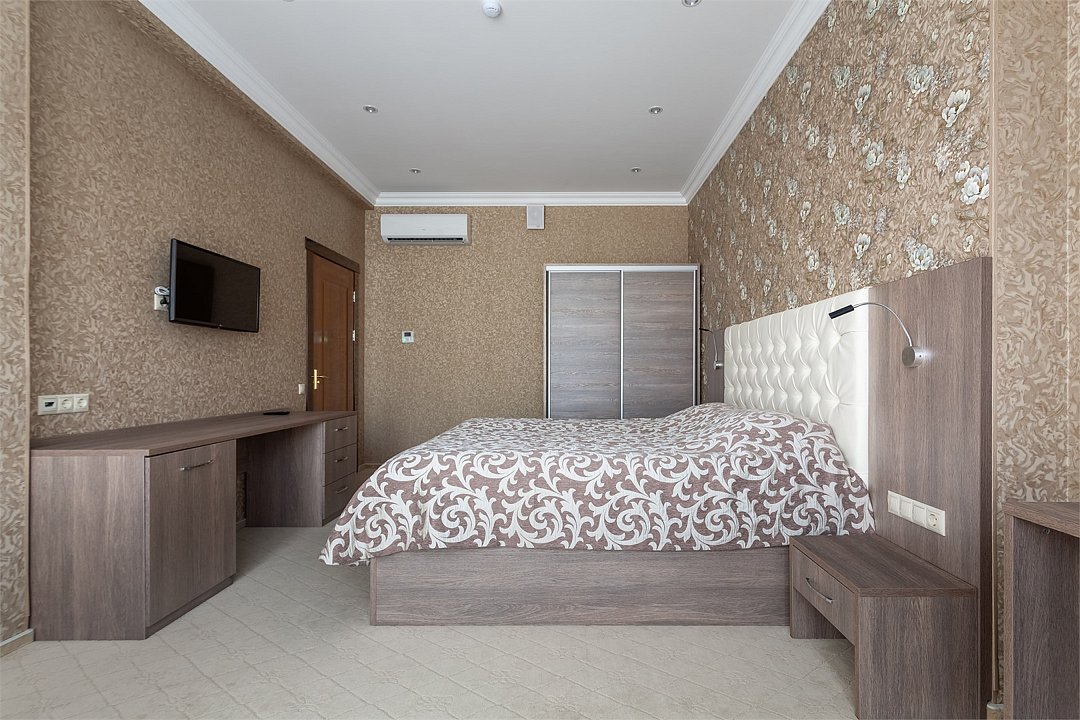 Wi-Fi, кондиционер, фен, душевая кабина, санузел, теплый пол, банные принадлежности, банные полотенца, косметические средства, две односпальные или большая двуспальная кровать, стулья, шкаф для одежды, журнальный столик, письменный стол, чайный набор, чайник, питьевая вода, отопление, вид на город, ламинат, высокие потолки, стаканы, стул, тумба, туалетные средства, цифровое тв, диван-кровать, телевизор с плоским экраном, москитная сеткаВ номере