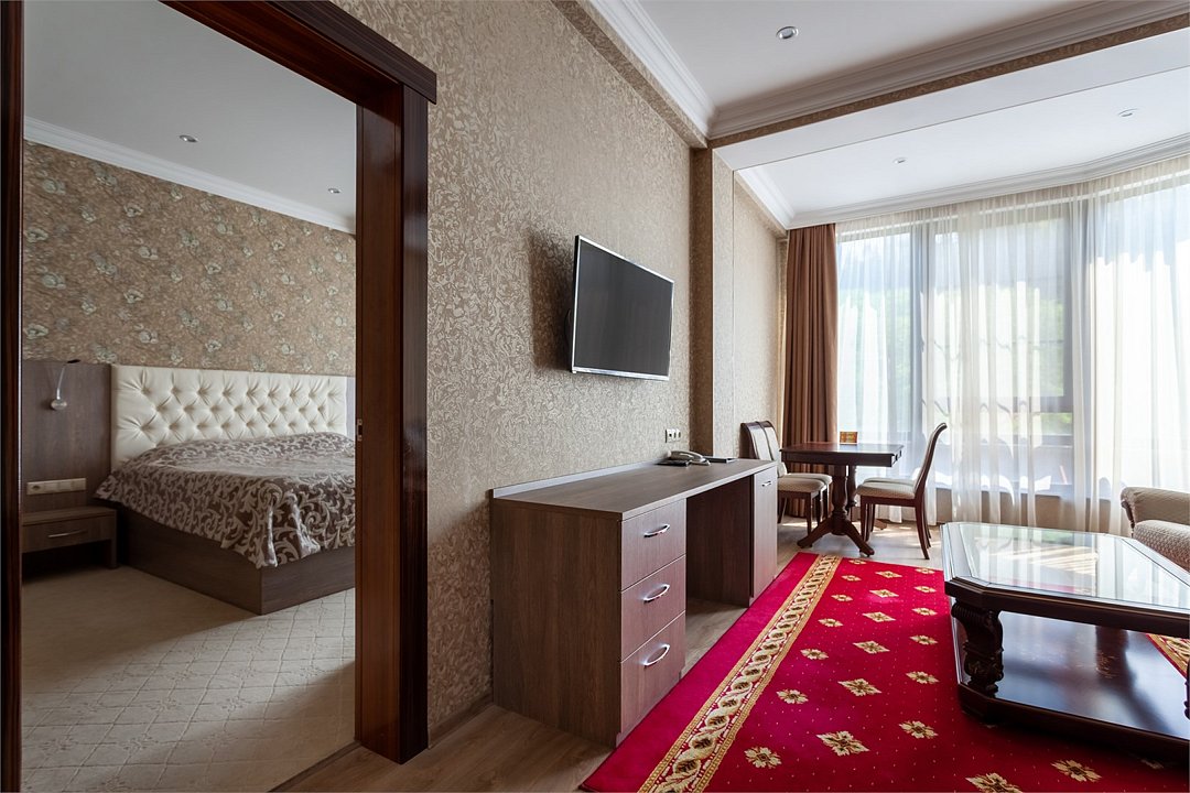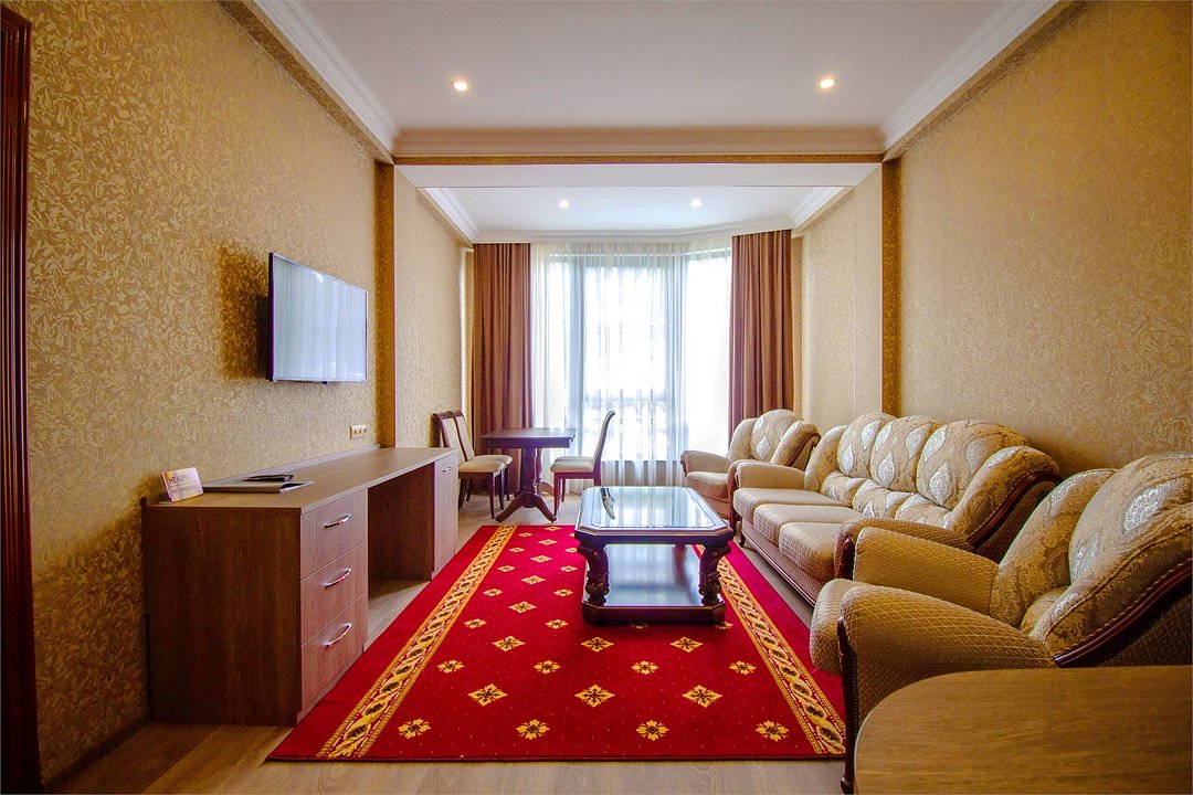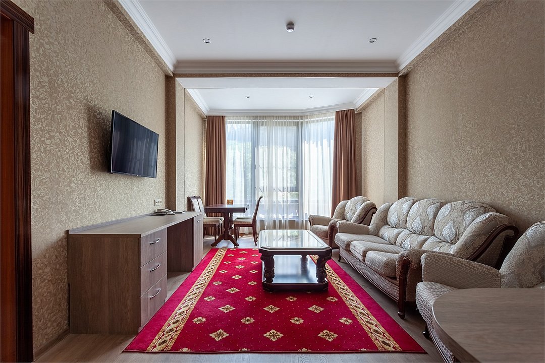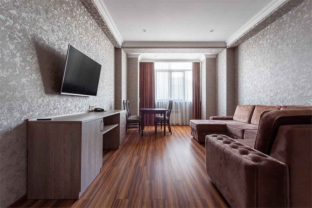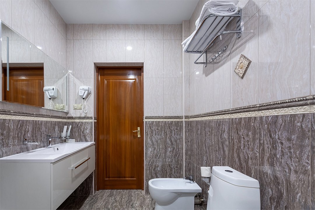 Wi-Fi, интернет, фен, электронные замки, ванная комната, ванна, санузел, биде, банные принадлежности, халаты, банные полотенца, тапочки, косметические средства, односпальная кровать, стулья, шкаф для одежды, гардеробная, вешалки, журнальный столик, стол для переговоров, зеркало, две комнаты, мини-бар, чайный набор, чайник, унитаз, раковина, вид на город, сплит-система, цифровое тв, раскладной диван, внутренний телефон, телевизор с плоским экраном, мини-холодильник, шкаф-купеВ номере