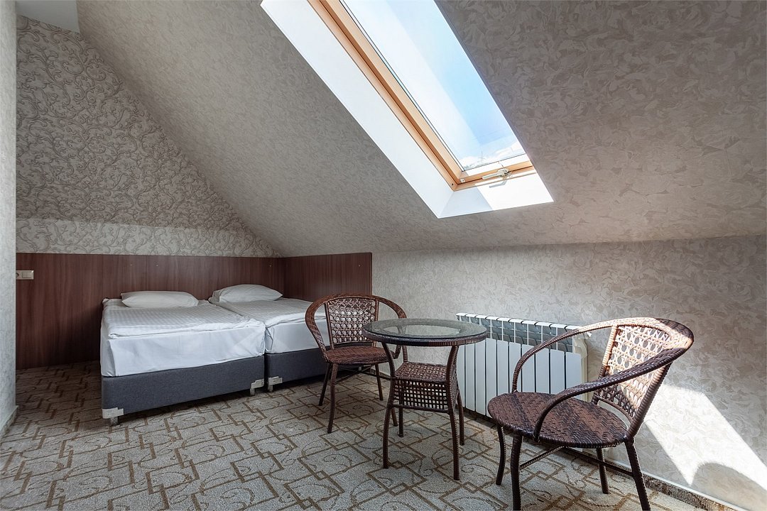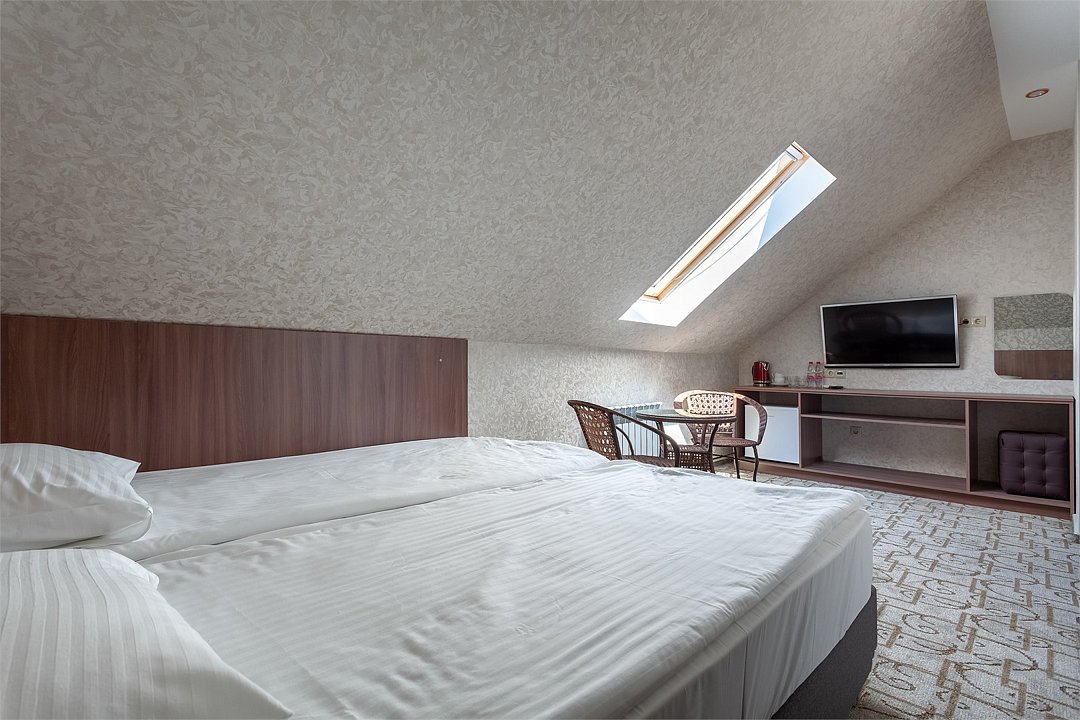 телевизор, Wi-Fi, интернет, телефон, кондиционер, система климат-контроля, фен, утюг, душевая кабина, санузел, тапочки, односпальная кровать, две односпальные кровати, гладильная доска, зеркало, чайник, унитаз, раковина, питьевая вода, ковровое покрытие, душ, вид на город, вид во двор, стаканы, туалет, сплит-система, цифровое тв, внутренний телефон, телевизор с плоским экраном, мини-холодильник, мансардные окна, телевизор со Smart TVВ номере