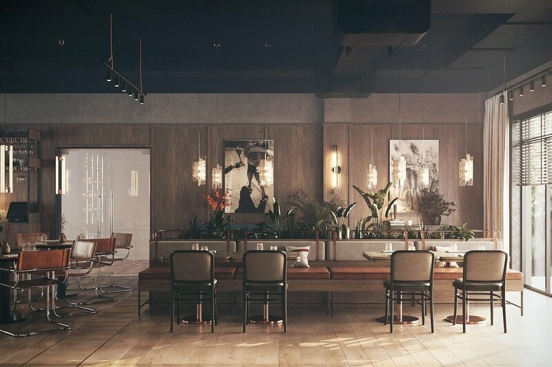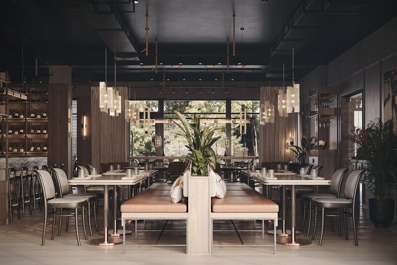 Ресторан предлагает кухню-fusion из российских продуктов, фермерской или добытой собственноручно дичи и рыбы, свежеиспечённый хлеб, натуральный сыр собственного приготовления, при создании блюд в ход активно идут локальные травы, коренья, грибы. «Тенистое место» стремится создавать атмосферу элегантности, роскоши и изысканности, в которой гости могут забыть о времени, получить удовольствие от качественной кухни, насладиться завораживающей живой музыкой.
