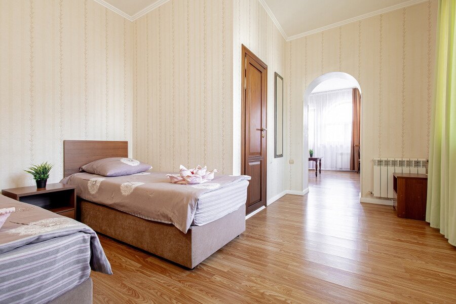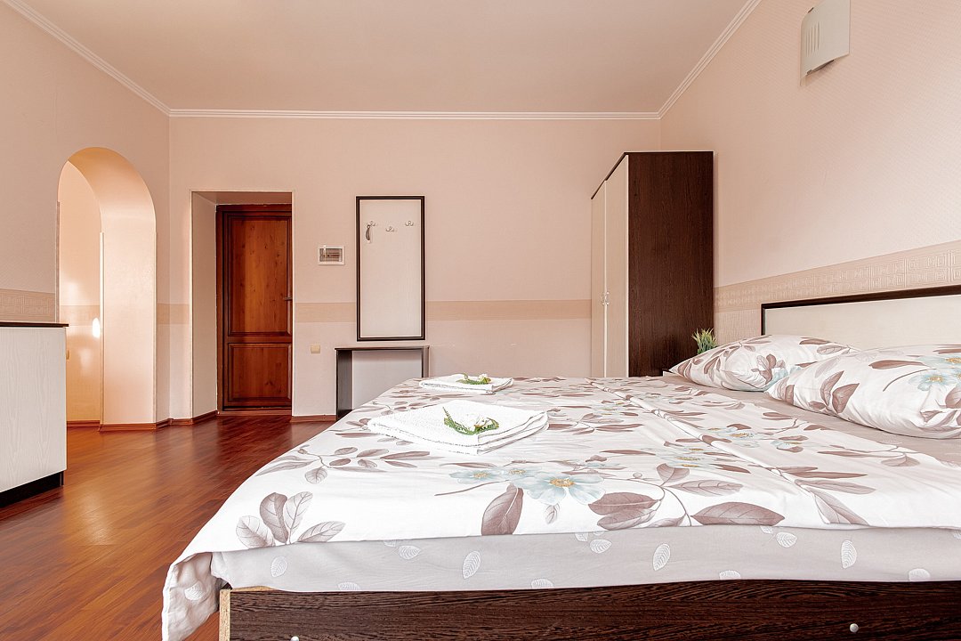 Пятиэтажный корпус гостевого дома разместился на Ленинградской улице. Номерной фонд состоит из просторных номеров разной вместимости и категорий комфорта. В каждом номере есть телевизор, холодильник, сплит-система, интернет wi-fi и санузел с ванной. Кроме того, есть барбекю-зона и столовая на территории.