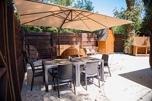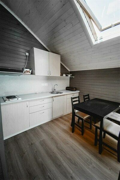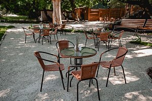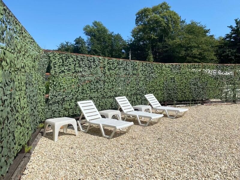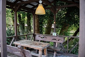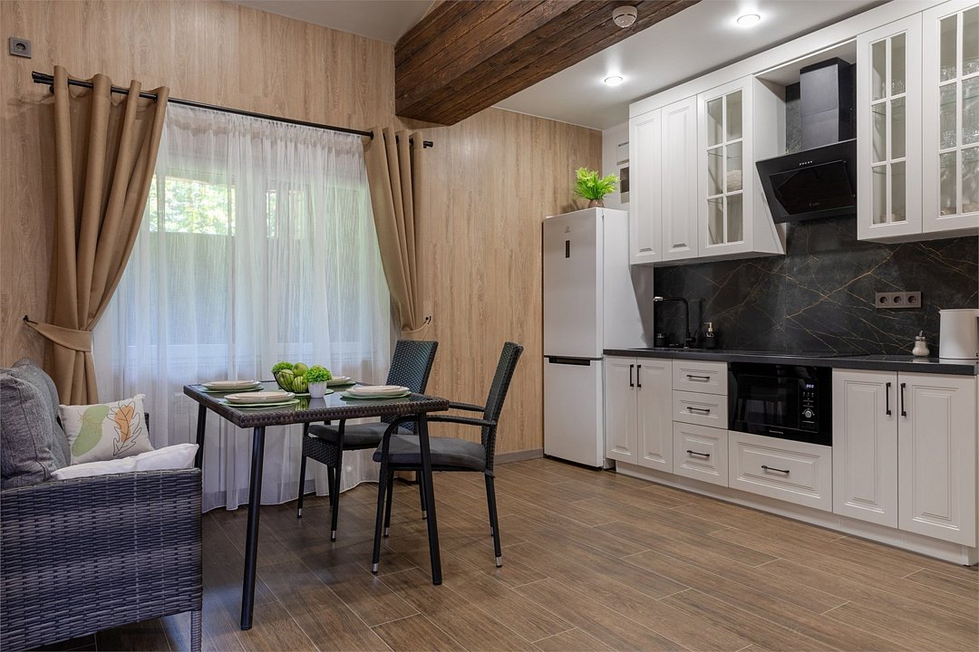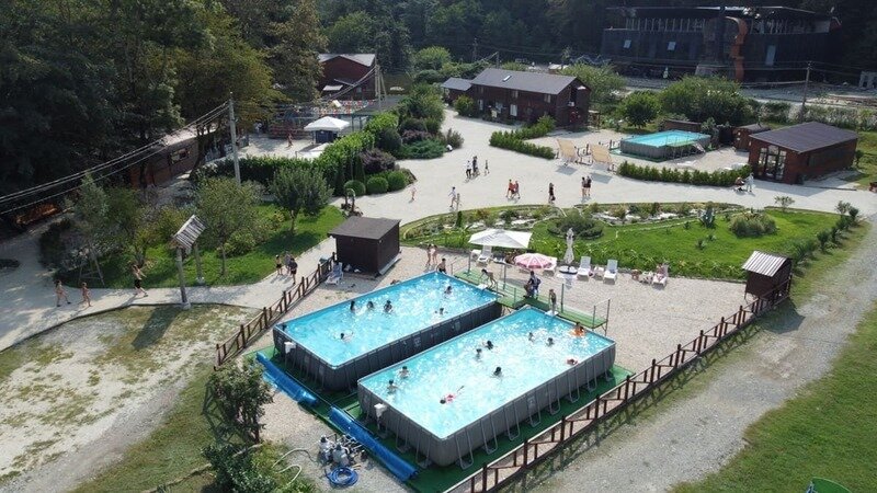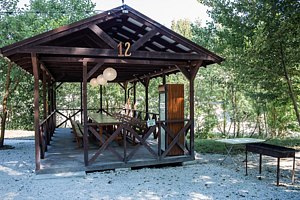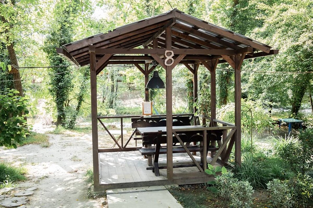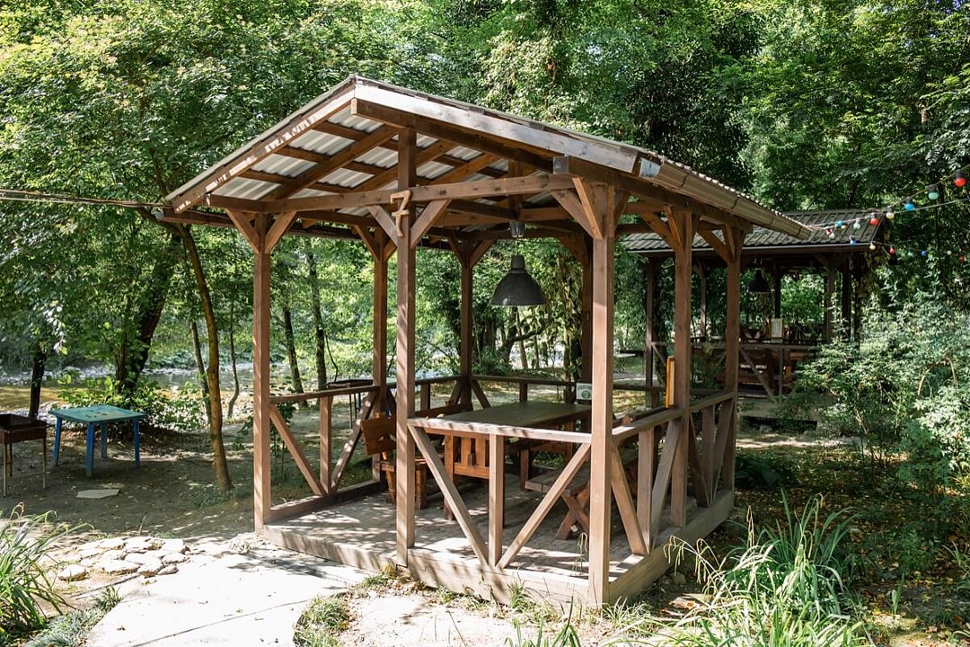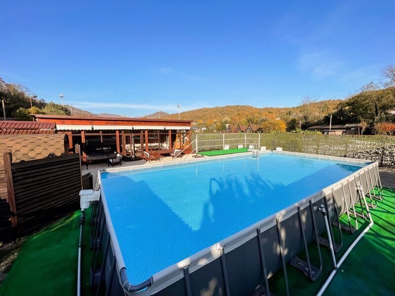 Территория базы обустроена с учетом любых потребностей гостей – здесь есть детские площадки, уютные беседки и бассейн со шезлонгами, где можно отдохнуть и насладиться солнцем. Кухня базы оборудована всем необходимым – обеденный стол, микроволновая печь, холодильник и кухонные принадлежности.