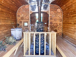 Индивидуальный банный комплекс, рассчитанный на компанию друзей или семью до 12 человек в уединении. Грильдомик, холодная купель. Парная с предбанником и душевой.