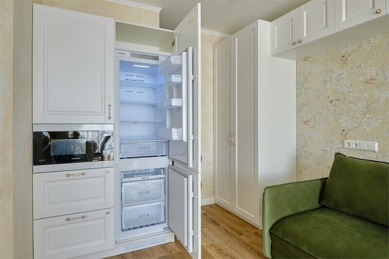 Апартаменты оборудованы современной и комфортабельной мебелью, а также имеют мини-кухню с необходимой бытовой техникой. Внутри апартамента есть кондиционер, телевизор, холодильник, микроволновая печь, электрическая плита, стиральная машина, электрочайник, утюг, набор посуды и фен.