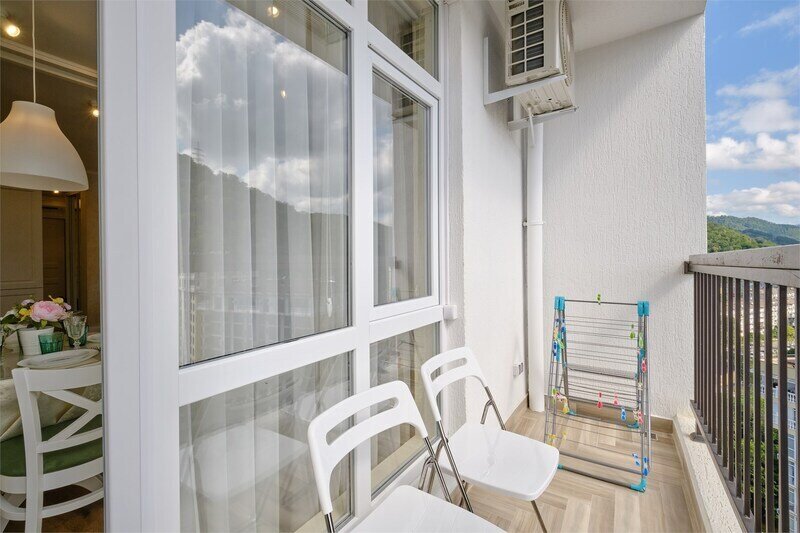 Апартаменты находятся в современном жилом комплексе "Босфор" в поселке Дагомыс. На территории комплекса имеется детская площадка, что делает их удобными для семейного отдыха.