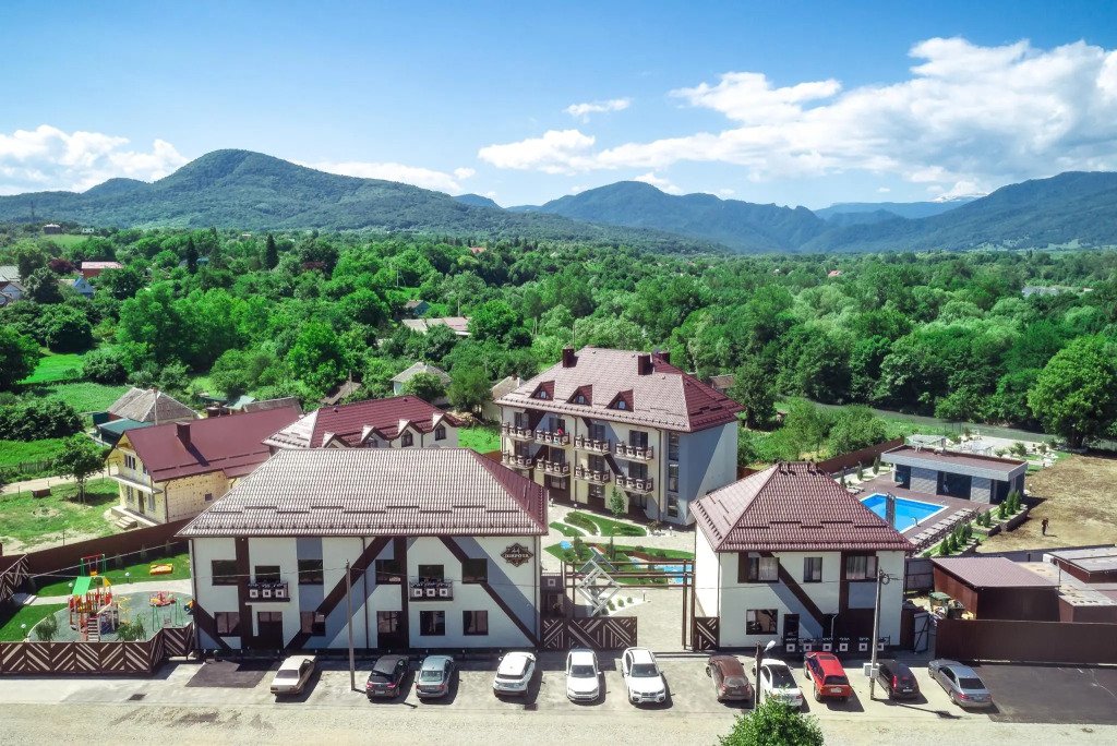 В погоне за впечатлениями важно возвращаться туда, где можно хорошо отдохнуть. Отель «44 Широта» расположен в Даховском сельском поселении. Этот отель находится 1 км от центра города. Рядом с отелем можно прогуляться. Неподалёку: Даховский мост, Савранская Канатная Дорога и Казачий камень (Девичий).