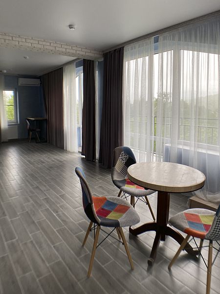 Вместительные двухкомнатные апартаменты для 4 гостей. Имеется все необходимое для комфортного пребывания: кухонная зона, душевая зона, гостиная, балкон.