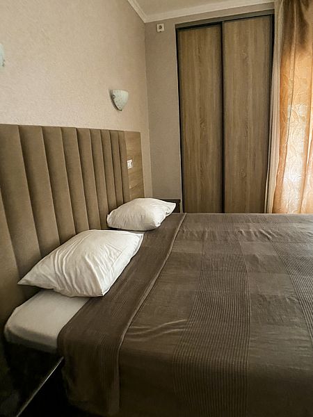 Комфортные апартаменты для двоих. В номере есть все необходимое для полноценного отдыха: двух/односпальные кровати, кухонная зона, душевая зона.