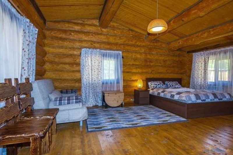Баня более 200 м2 из рубленного северного бревна.В бане бассейн с холодной водой, бильярд, купель с горячей водой, сеновал, гостиная и сама русская парная. Вместимость до 10 человек.