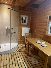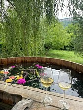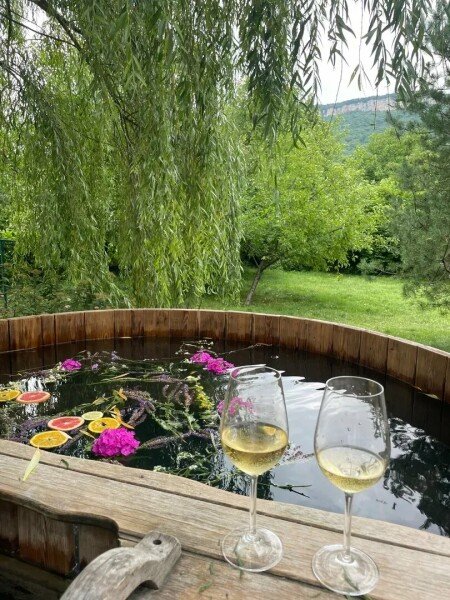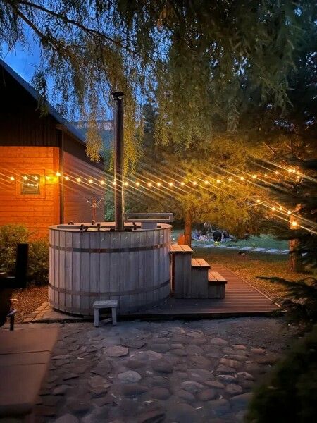 Возле дома имеется Японская Купель Фурако на дровяной печи с поддерживаемой температурой воды от 37 до 43 градусов с длительностью сеанса от 6 часов на свежем воздухе.