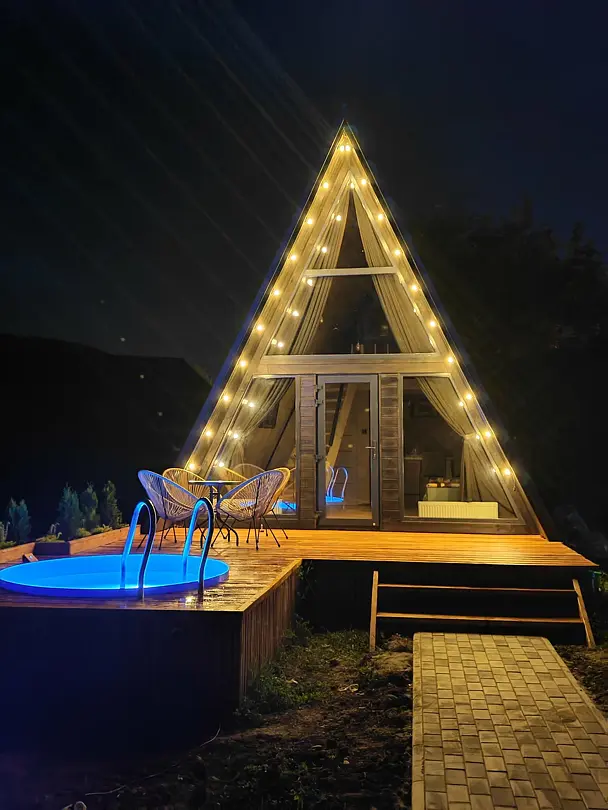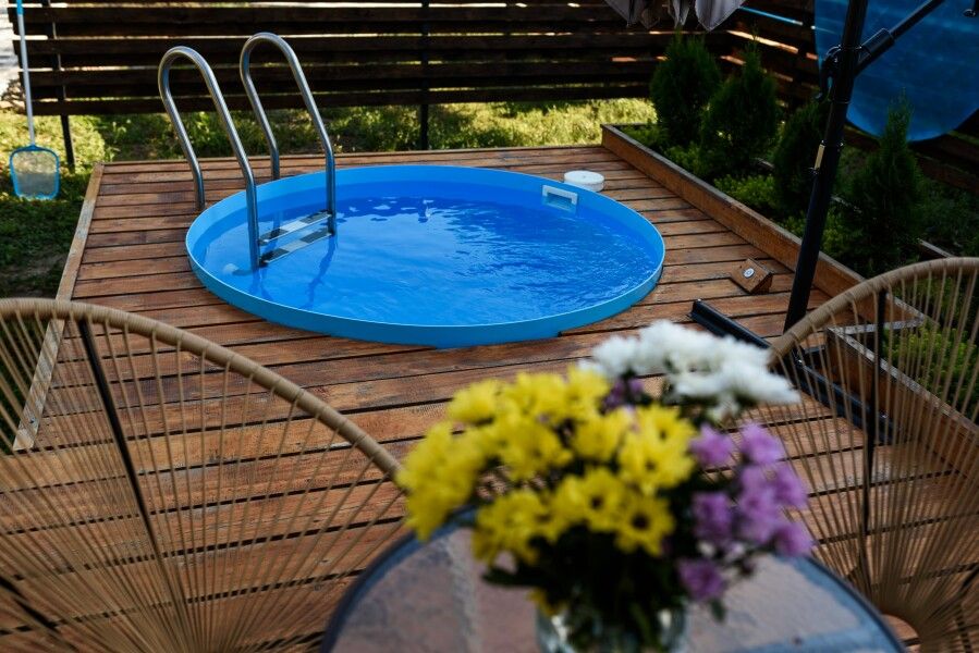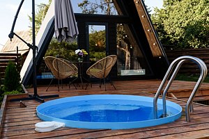 - бассейн с подогревом у каждого домика. Выход к бассейну с террасы;