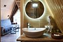 - двуспальная кровать — расположена на втором этаже, откуда открывается шикарный вид на реку Белую и горы Лаго-Наки;