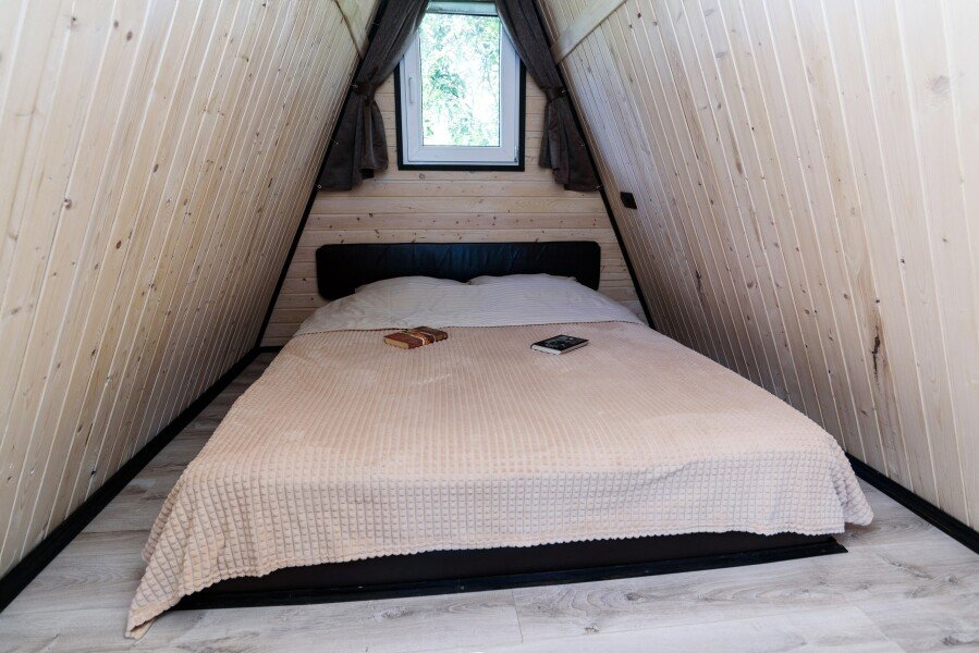 Очень комфортный и уютный домик в стиле лофт. Внутри есть все необходимое для комфортного проживания 24 человек. Комнаты не изолированы друг от друга.