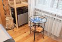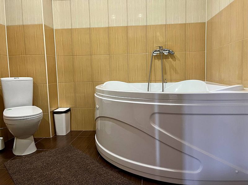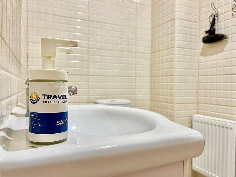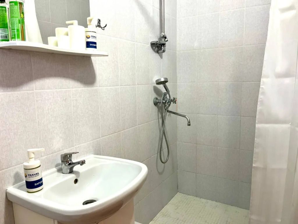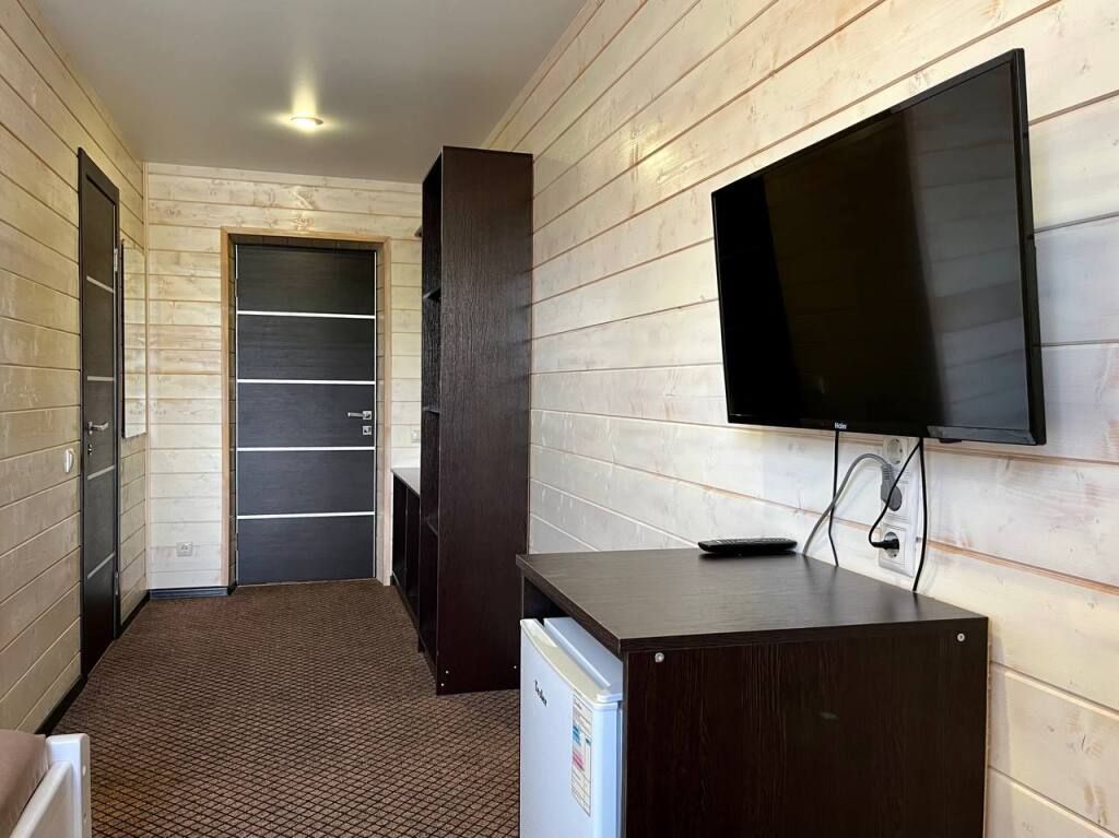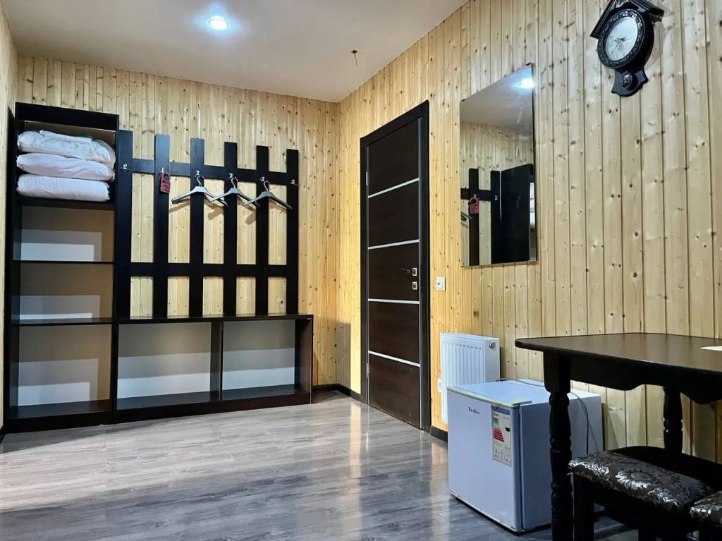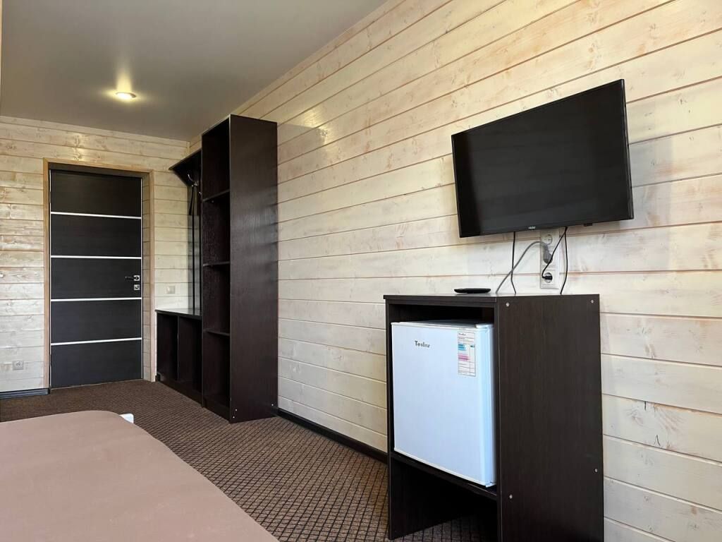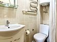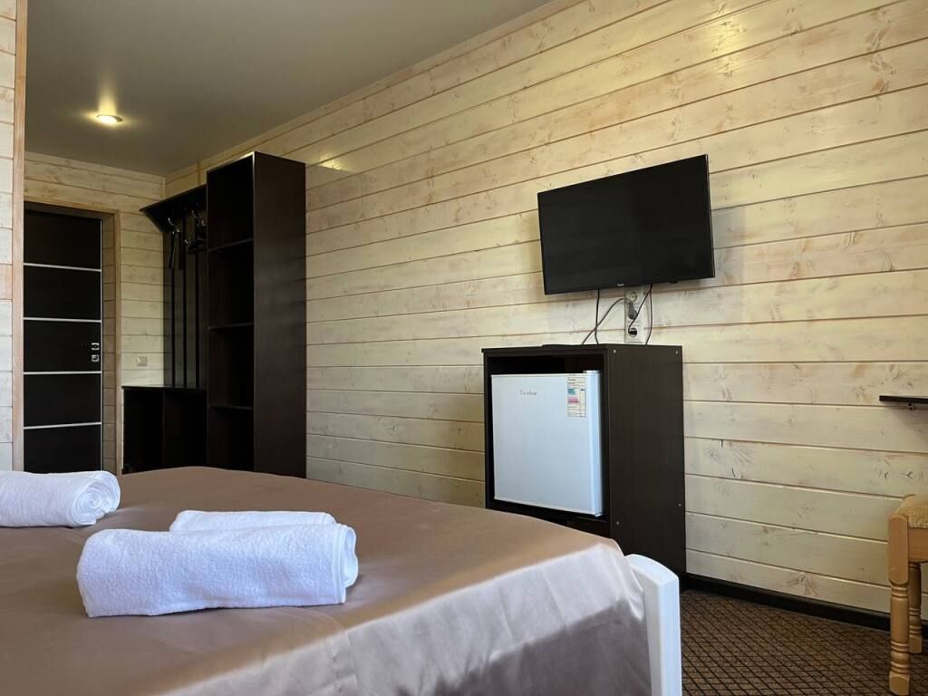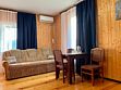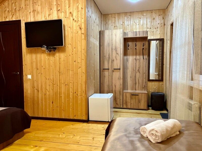 В распоряжении Гостей ванная комната (душ, туалет, раковина), одна двуспальная кровать и тахта, необходимые косметические и гигиенические средства (шампунь, мыло, гель), необходимый комплект домашнего текстиля, телевизор, холодильник, фен (на ресепшене).