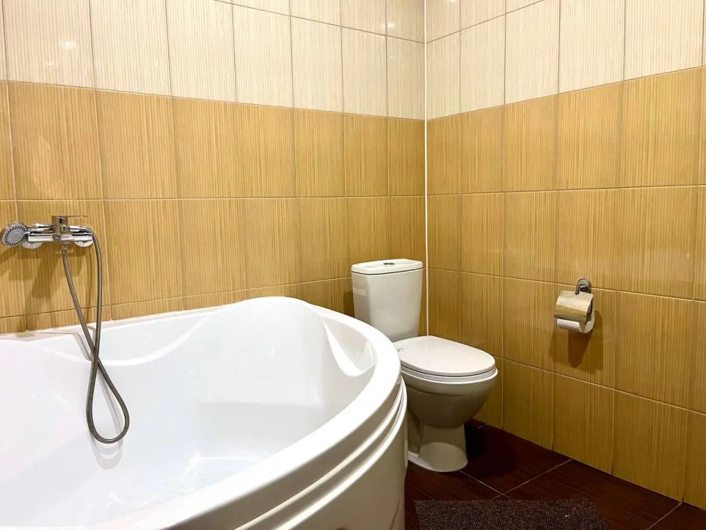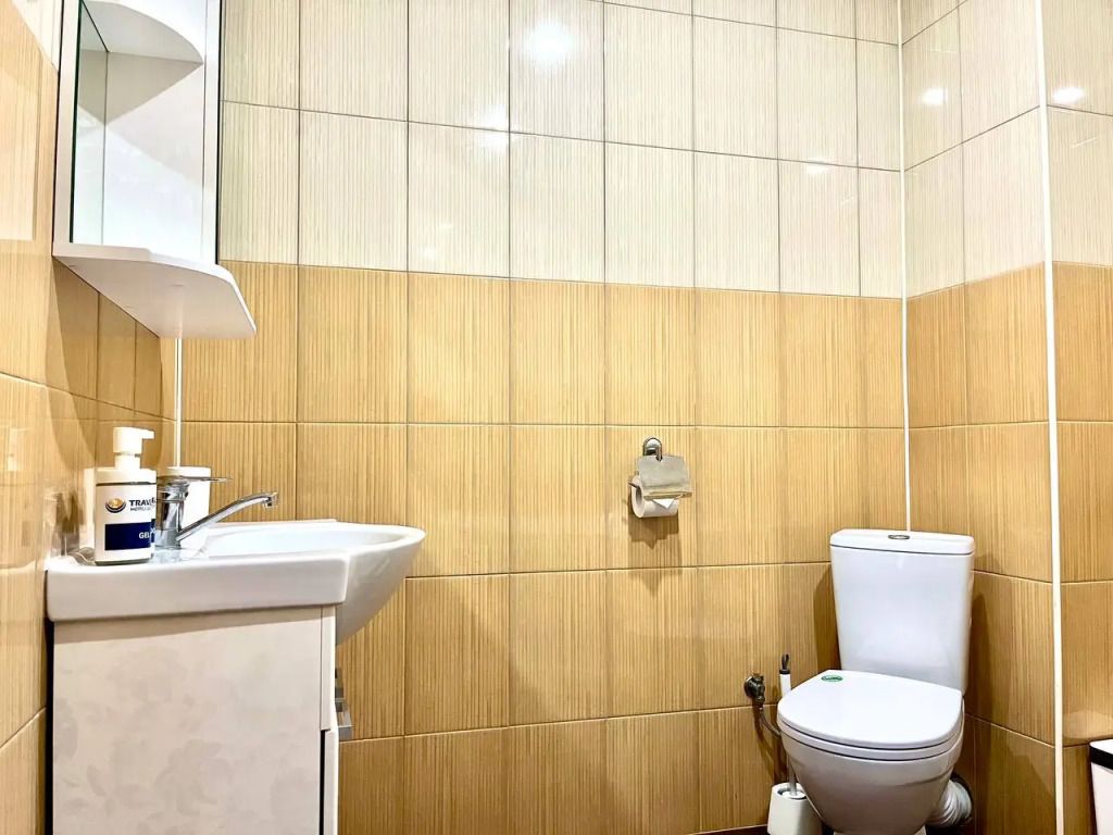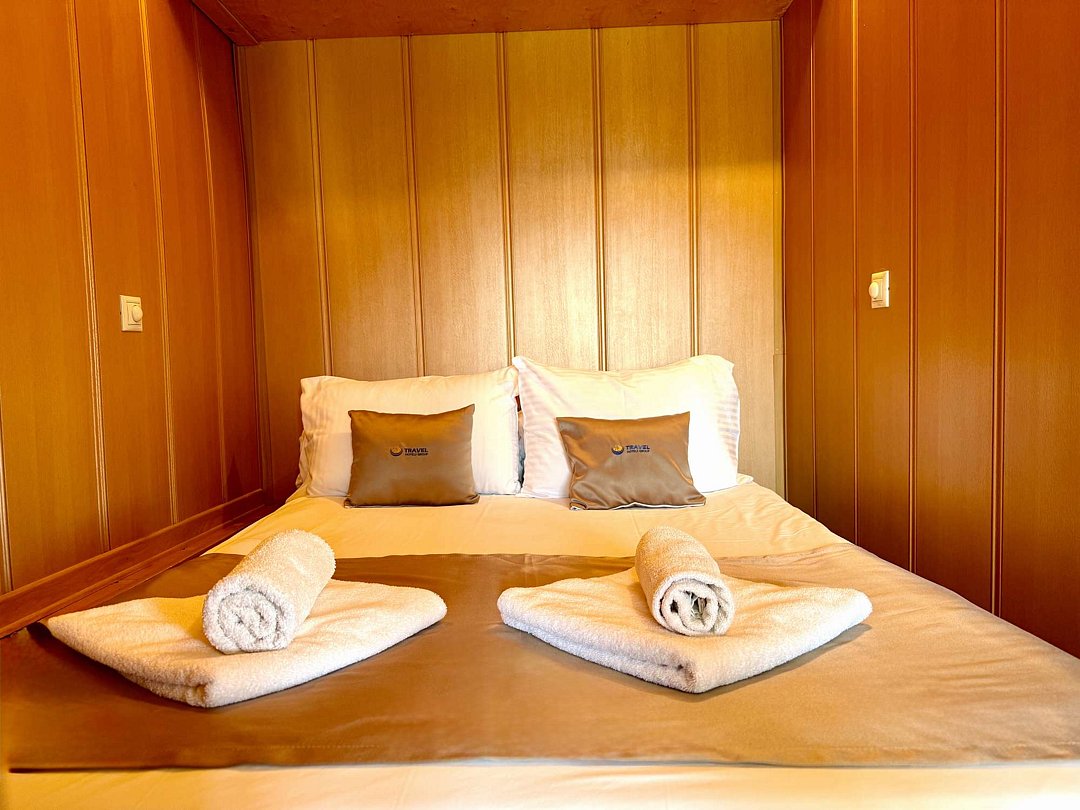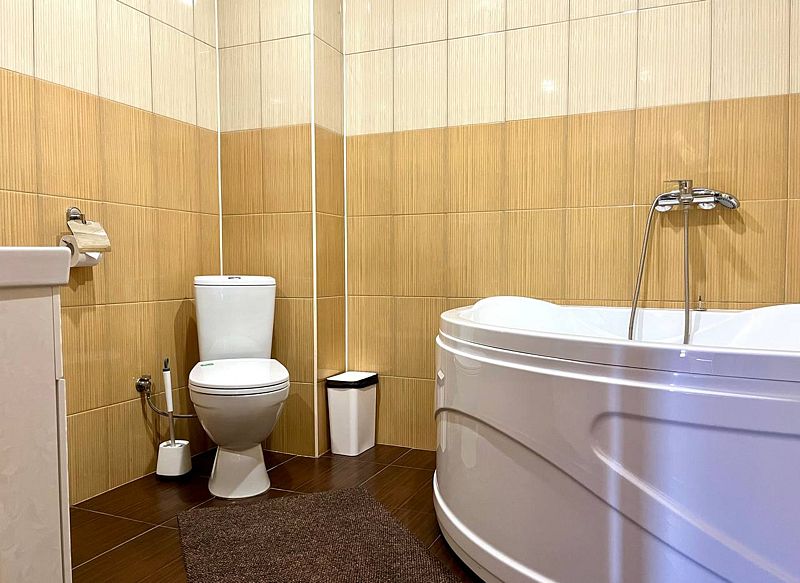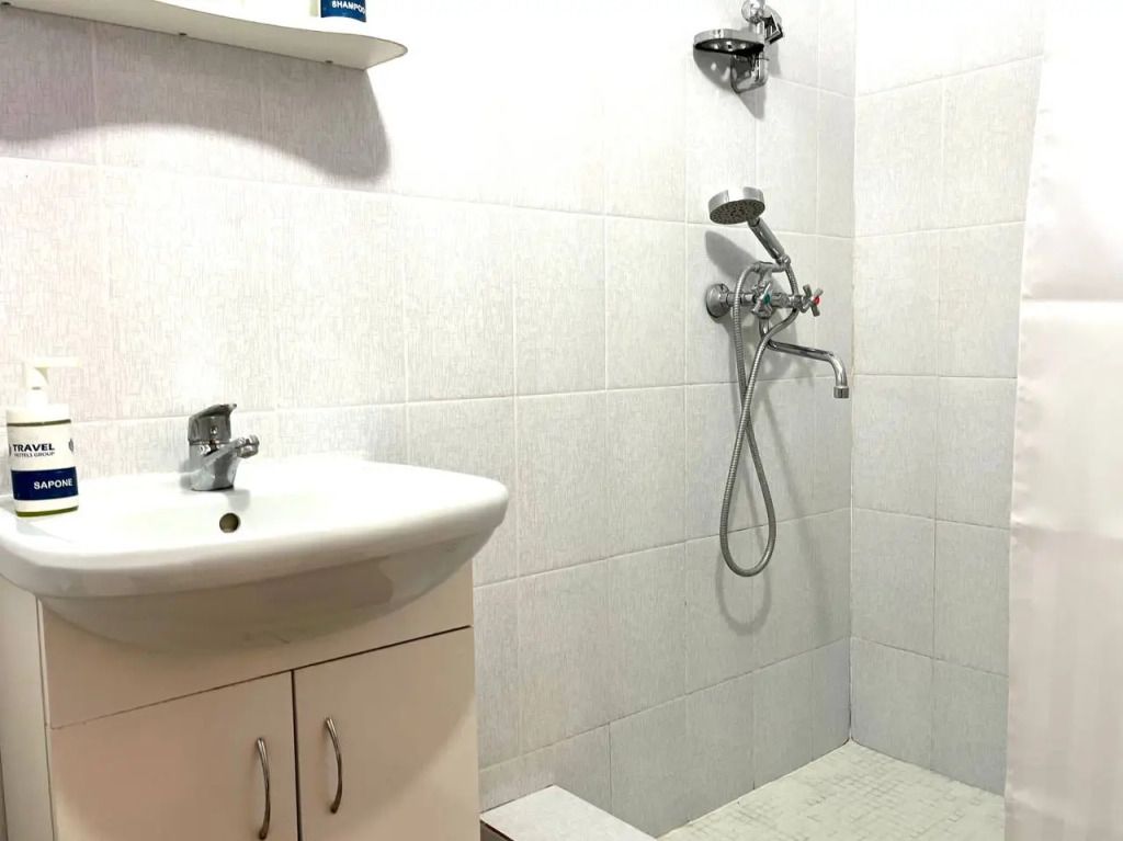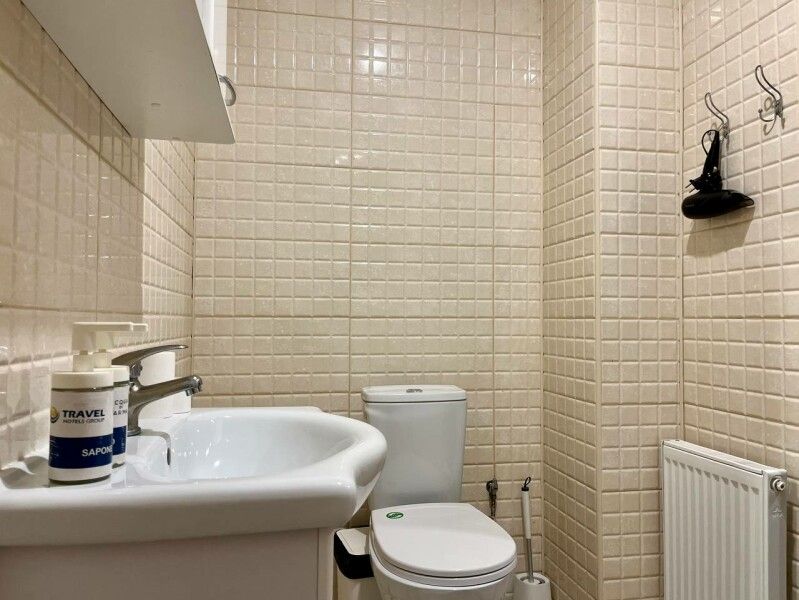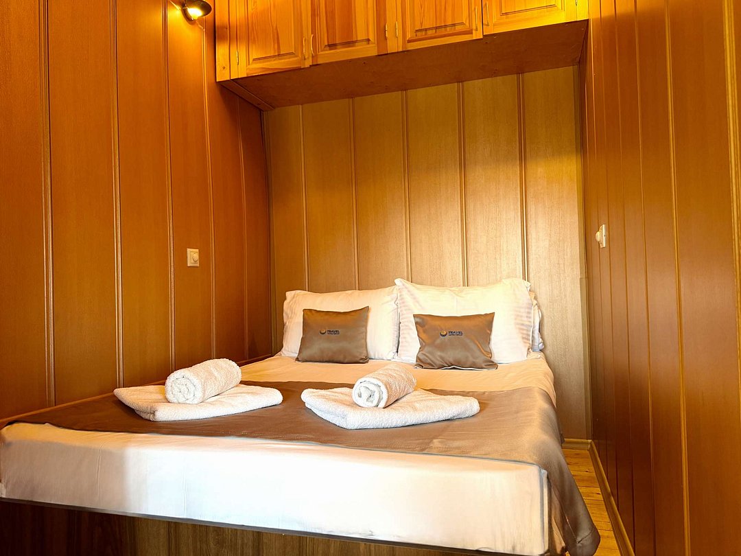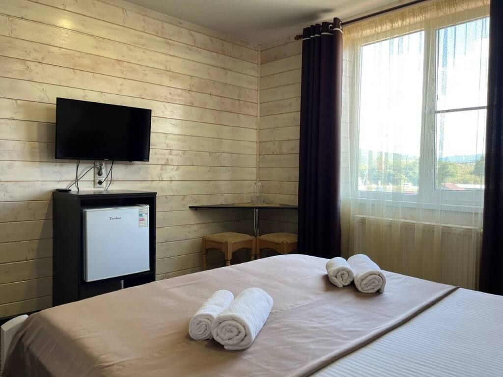 В распоряжении Гостей ванная комната (душ, туалет, раковина), одна двуспальная кровать и тахта, необходимые косметические и гигиенические средства (шампунь, мыло, гель), необходимый комплект домашнего текстиля, телевизор, холодильник, фен (на ресепшене).