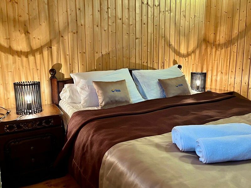 Инфраструктура: чан, зона отдыхаМинимальное время аренды: 2 часаРасслабиться в жаркой бане или принять горячие ванны в чане под звездным небом — идеальный отдых после активного дня.