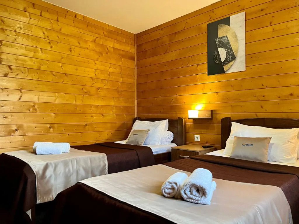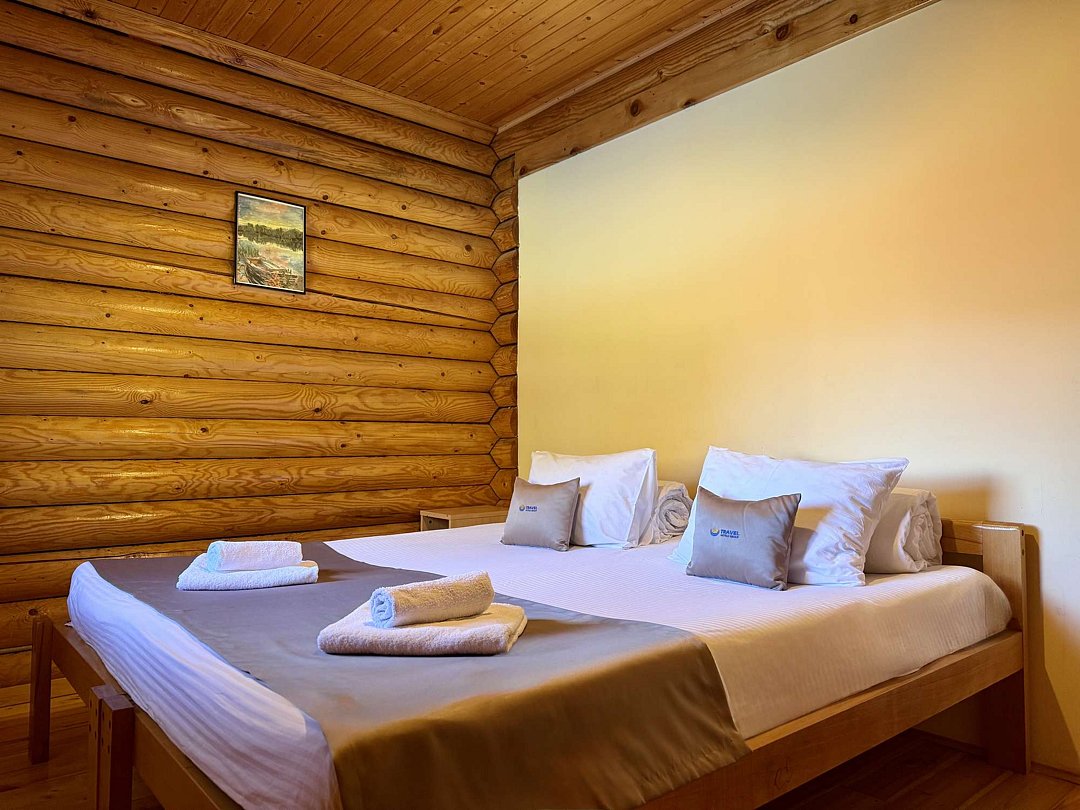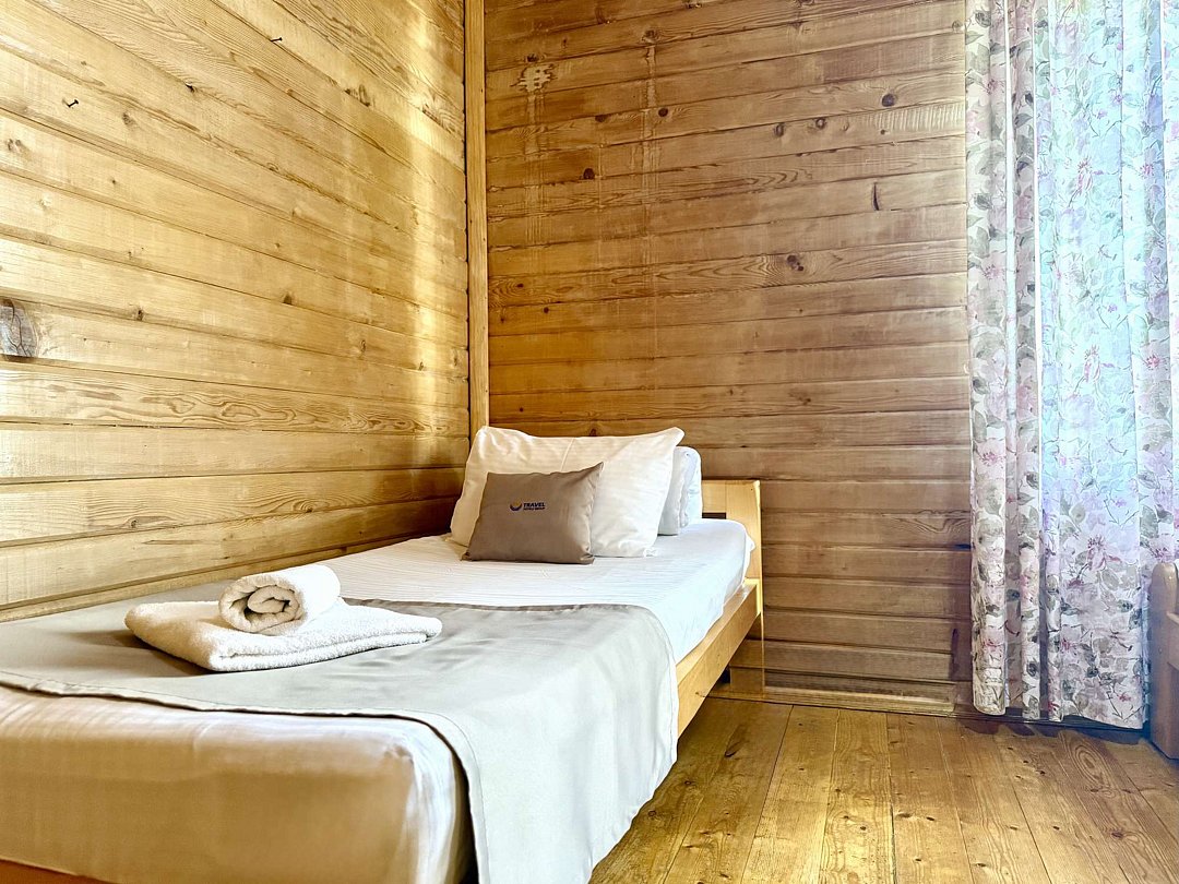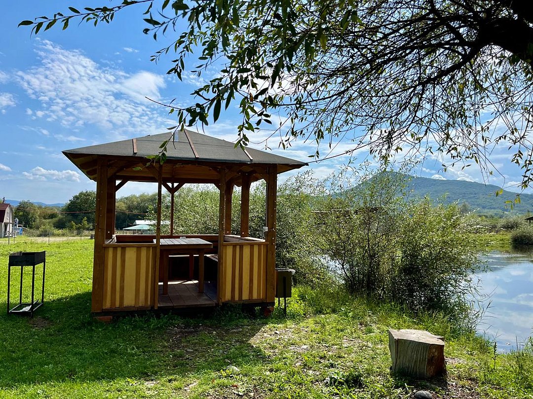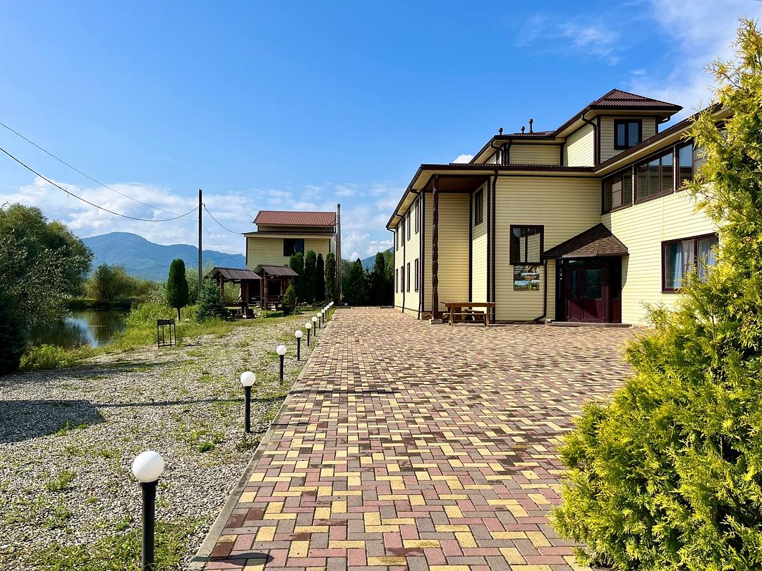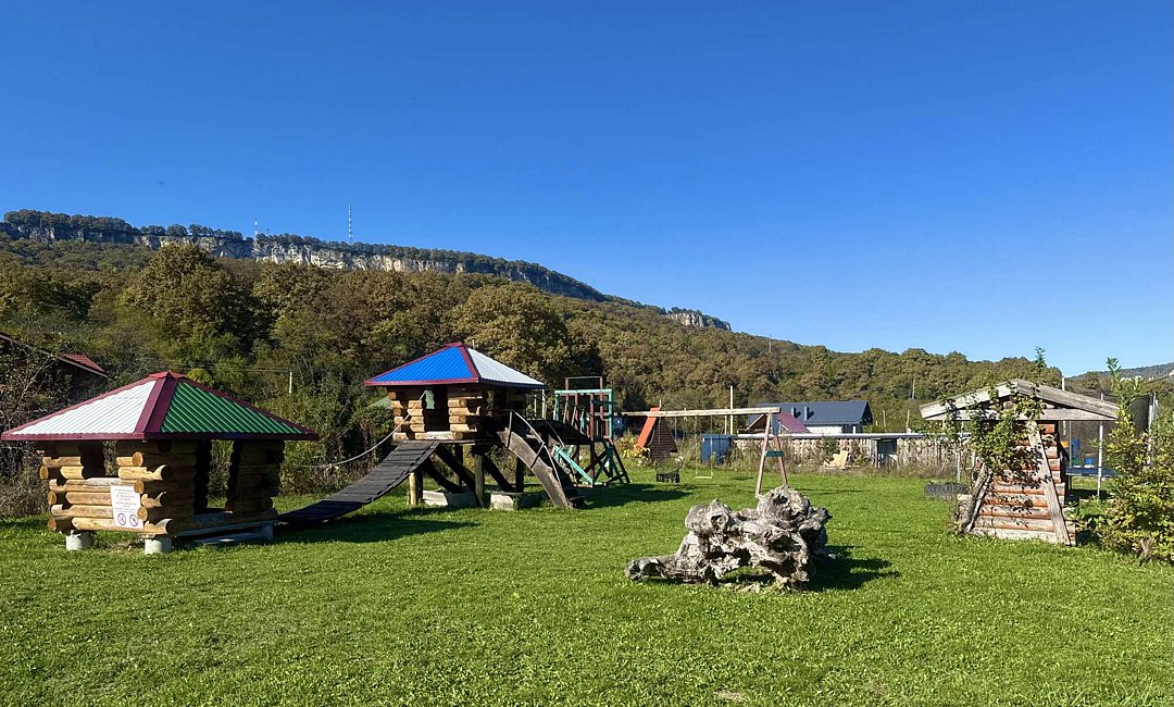 На территории отеля расположено живописное горное озеро, где водится разнообразная рыба — от щук до карасей. Для любителей рыбалки предоставляется возможность взять напрокат все необходимое снаряжение. Кроме того, гости могут насладиться традиционной дровяной баней с зоной отдыха, а также чан-баней под открытым небом. Для активных путешественников организованы увлекательные экскурсии и развлечения, включая рафтинг, катание на лошадях и познавательные туры по Адыгее. Юные гости также не будут скучать, ведь для них оборудована собственная игровая площадка.